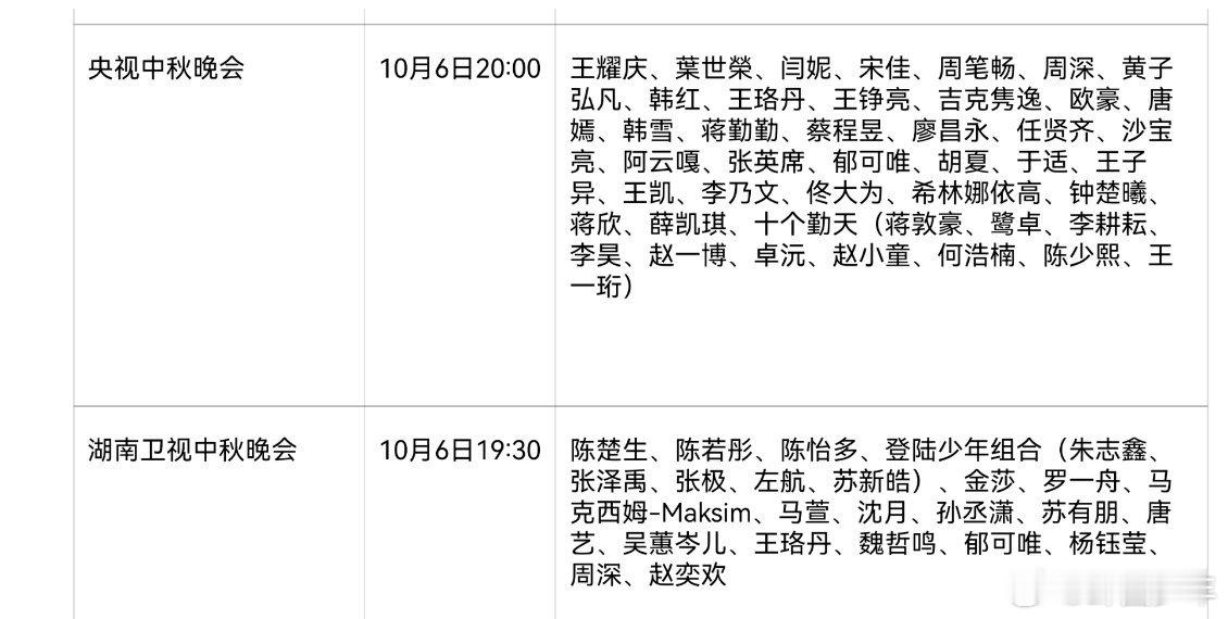 各平台中秋晚会阵容各平台中秋晚会阵容,你想跟着哪个明星看秋晚?