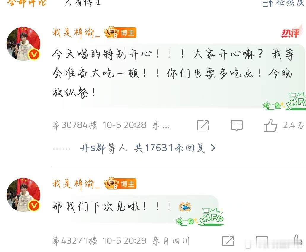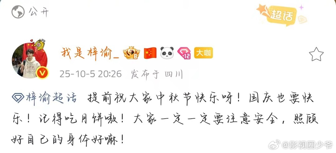 梓渝 空降超话!梓渝 今天唱的特别开心!并对Yuni们说:提前祝大家中秋节快乐呀!国庆也要快乐!记得吃月饼嗷!大家一定一定要注意安全,照顾好自己的身体好嘛!