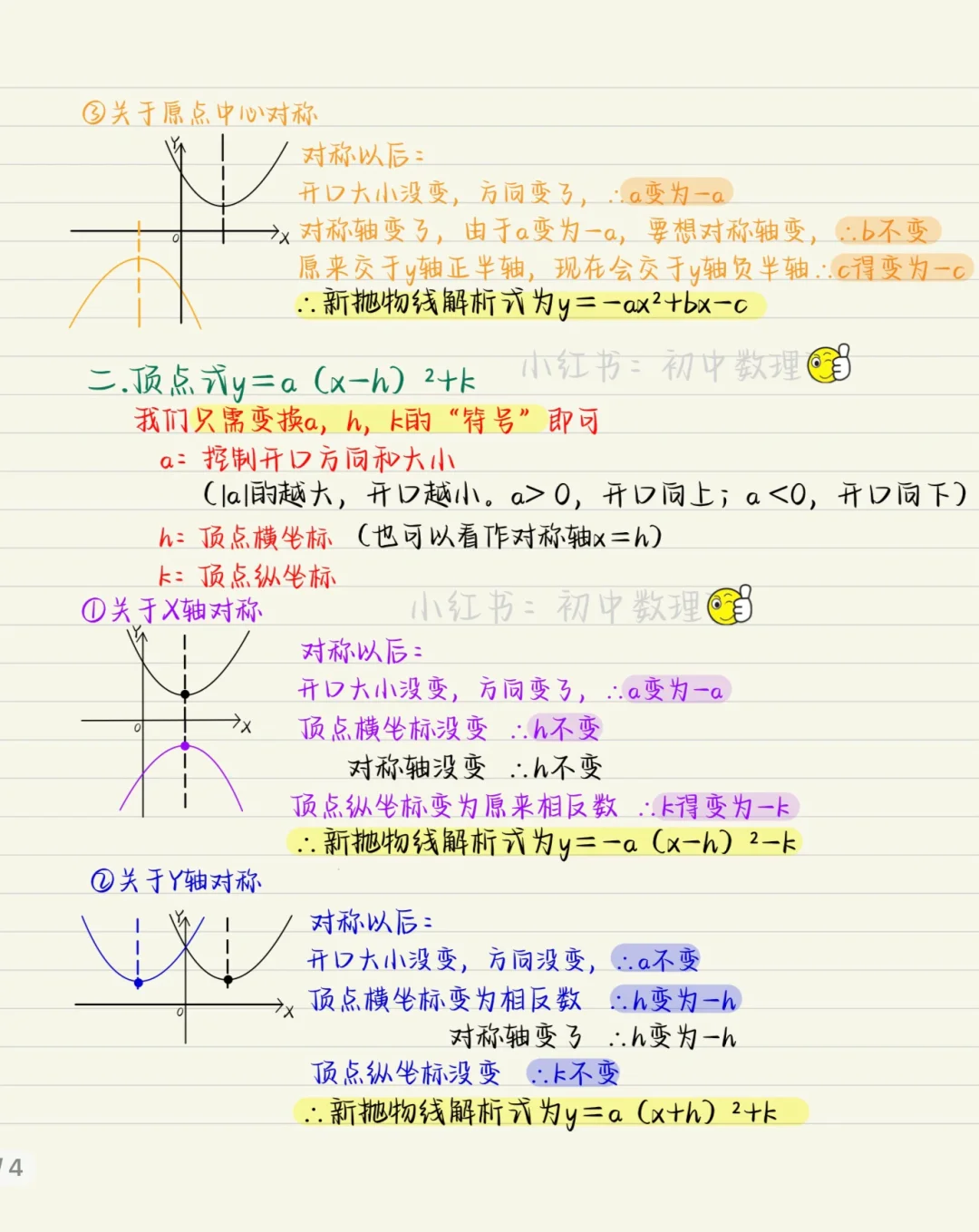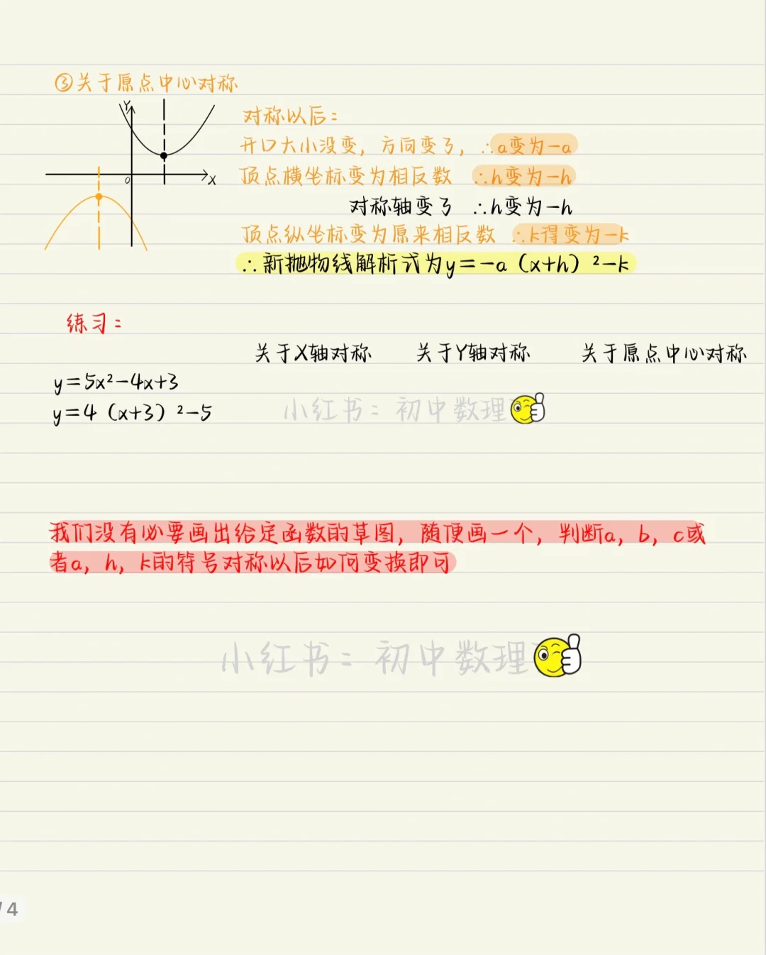 这一块属于重点也是相对来说较难的一点。画出草图,根据图形变换符号即可,一般式和顶点式都可以。不要死记硬背。