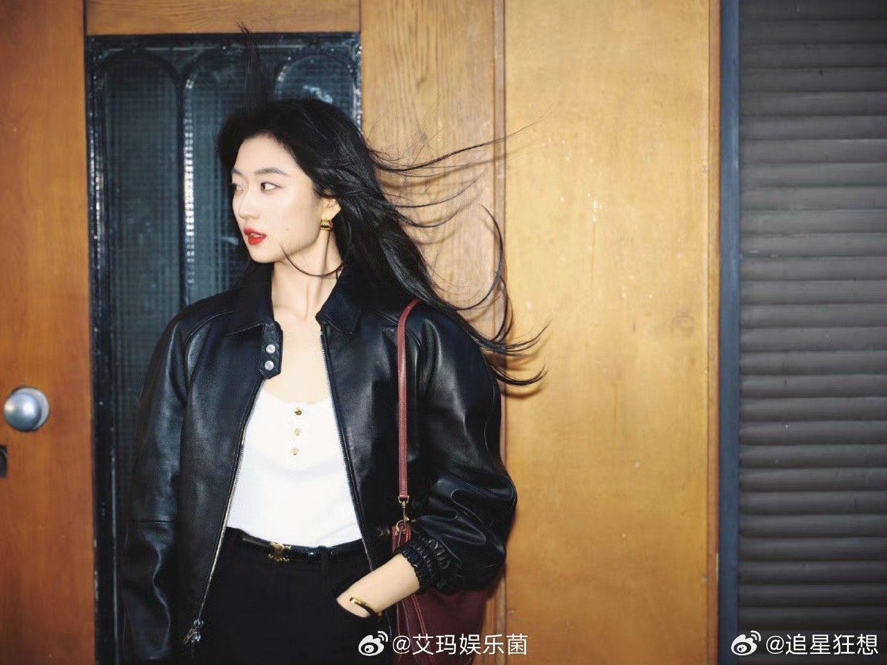 巴黎河畔的风也偏爱孙千 孙千的河畔大片记忆点拉满!风掀发丝的瞬间,复古气场爆棚,黑皮衣红唇,活脱脱行走的画报。 ​​​