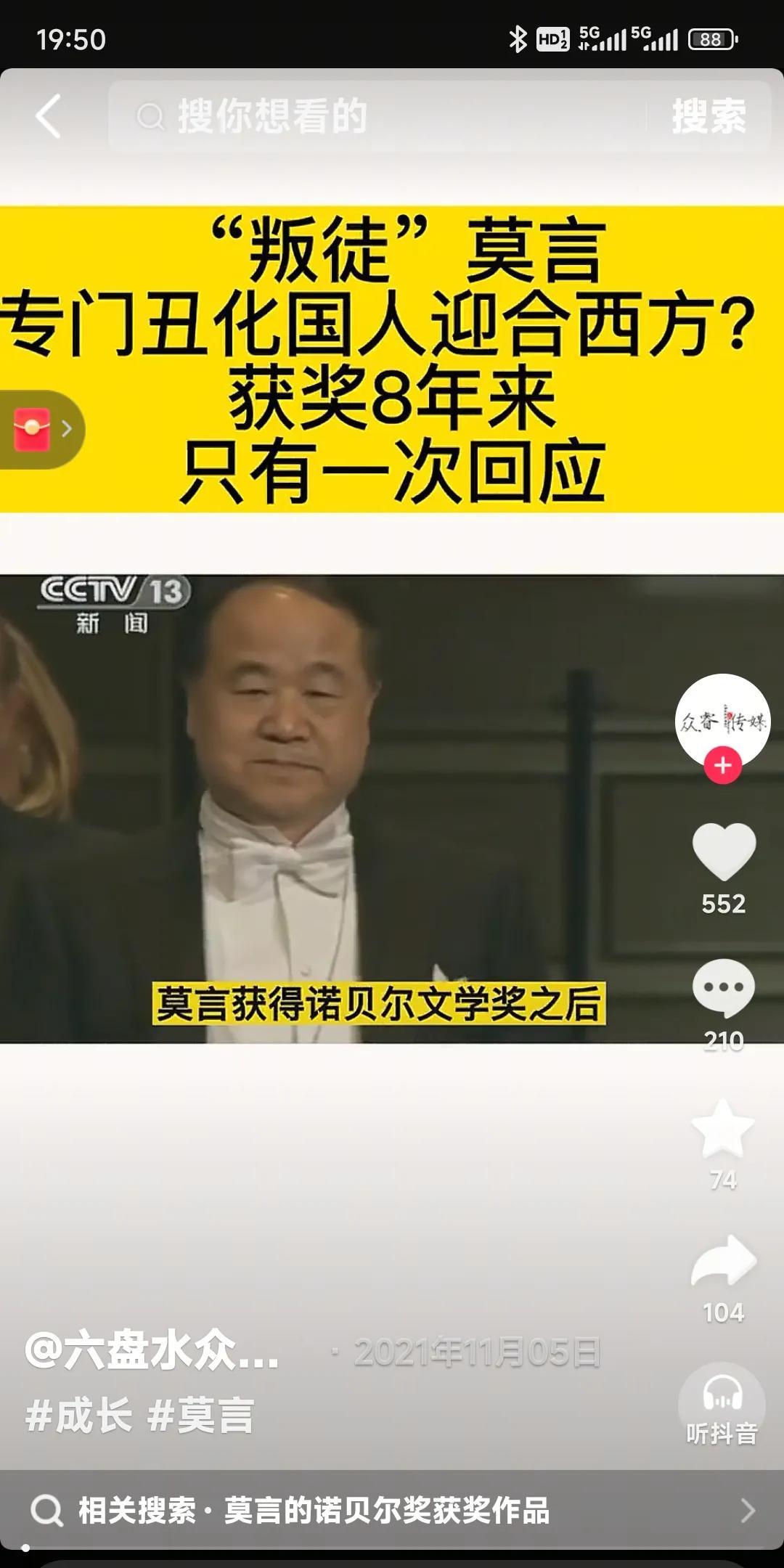 莫言说文学不唱赞歌的工具。他在诺贝尔颁奖晚会的赞歌致词,应该是挽歌吧。