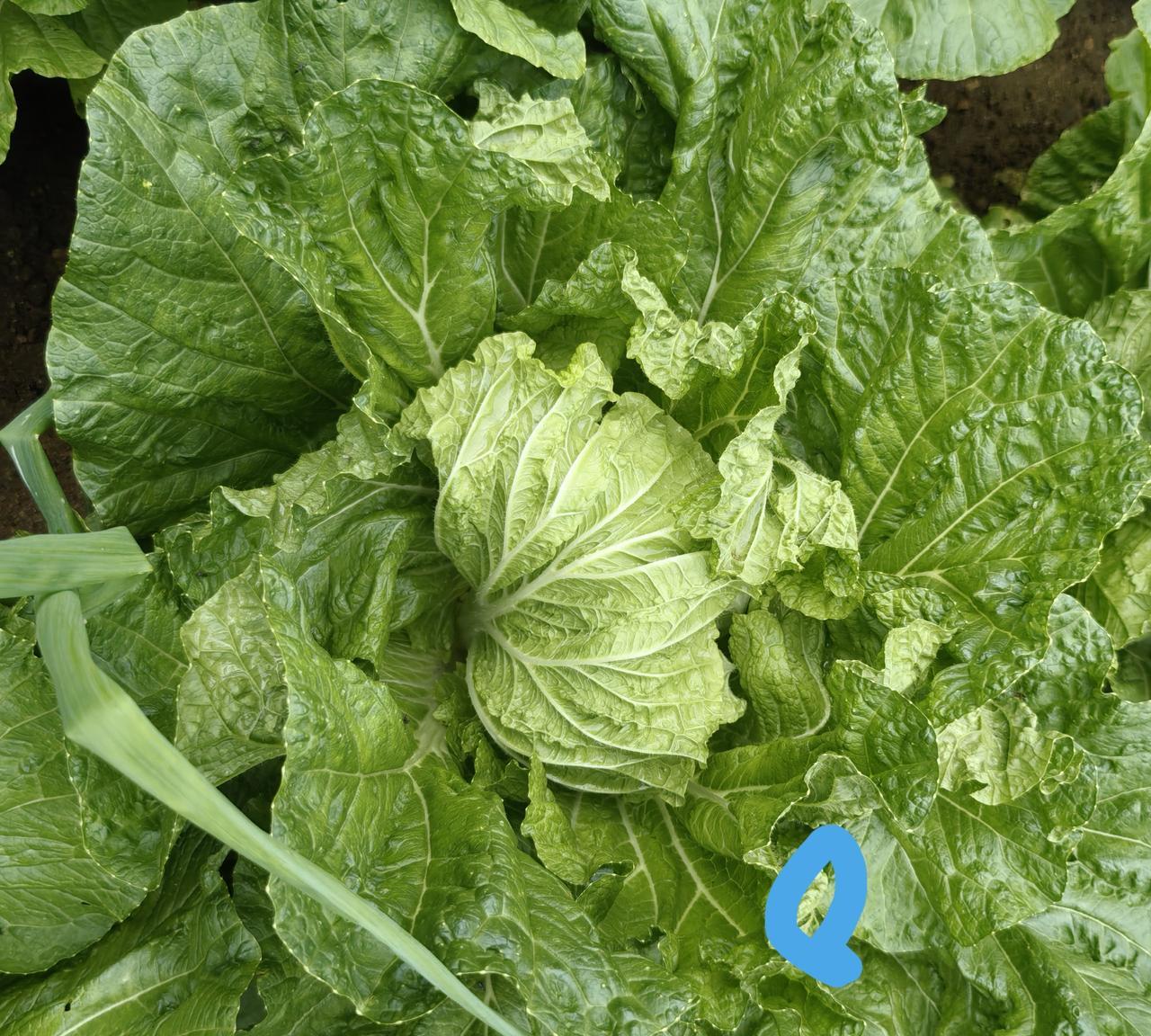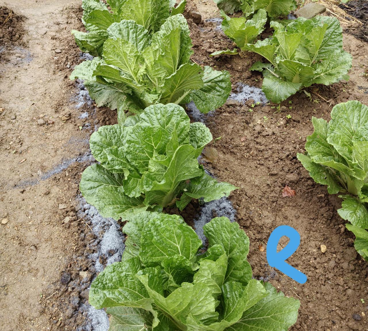 这次要纠正我此前的一个说法了。 对比实验表明,刚包心大白菜,看来还是要追次肥,这是由今秋多雨、雨大决定的。 我们这儿,从立秋种白菜以后,就没断着雨,而且常常会中雨大雨连着下。 大白菜起垄种,雨水大,垄沟排水淌流,几场雨下来,就会导致肥土一再流失。 此前发文,曾说大白菜到了包心期,就不要追肥了。 前天,我抢在雨前,给实验地块大白菜淋施了一些水肥,同时给主地块大白菜垄背撒施了些草木灰。 昨天今天一阵一阵的有雨,下午停雨进园看到,前天淋施过水肥,今天就见到实效了——大白菜明显变得深绿肥壮了。 撒施过草木灰——我用的是“拌二灰”,稻壳炭5份,生石灰1份,稻壳炭富含钾元素,也含钙磷镁,包心期大白菜喜钾,也需要钙磷镁助攻——今天下午看到,也变样了,叶片明显油黑,有两棵莲座期弱菜,叶片也收拢了起来,施过草木灰,后发优势显现,要包心了。 菜友们,您是选择淋施水肥还是撒施草木灰,根据自己现有备料看,都可。 今年这情况,包心期追肥,看来大有必要。 我淋施的水肥,是桶沤半液体肥,兑水三分之一,充分搅匀,直接淋施在棵间和垄背。下雨,雨水将肥液带入地下,两天两宿,大白菜就明显见到了起色。 水肥足,大白菜不光长势旺,抗性也好,就像人,吃得好,营养足,有病能抗一样。 这样,撒施过草木灰的地块,三天后,我还要淋施一次水肥。淋施过水肥的地块,三天后,我会也撒施一次草木灰。 今秋摆弄大白菜,难啊!但经点心,费点劲儿,看到大白菜长得好,心安!