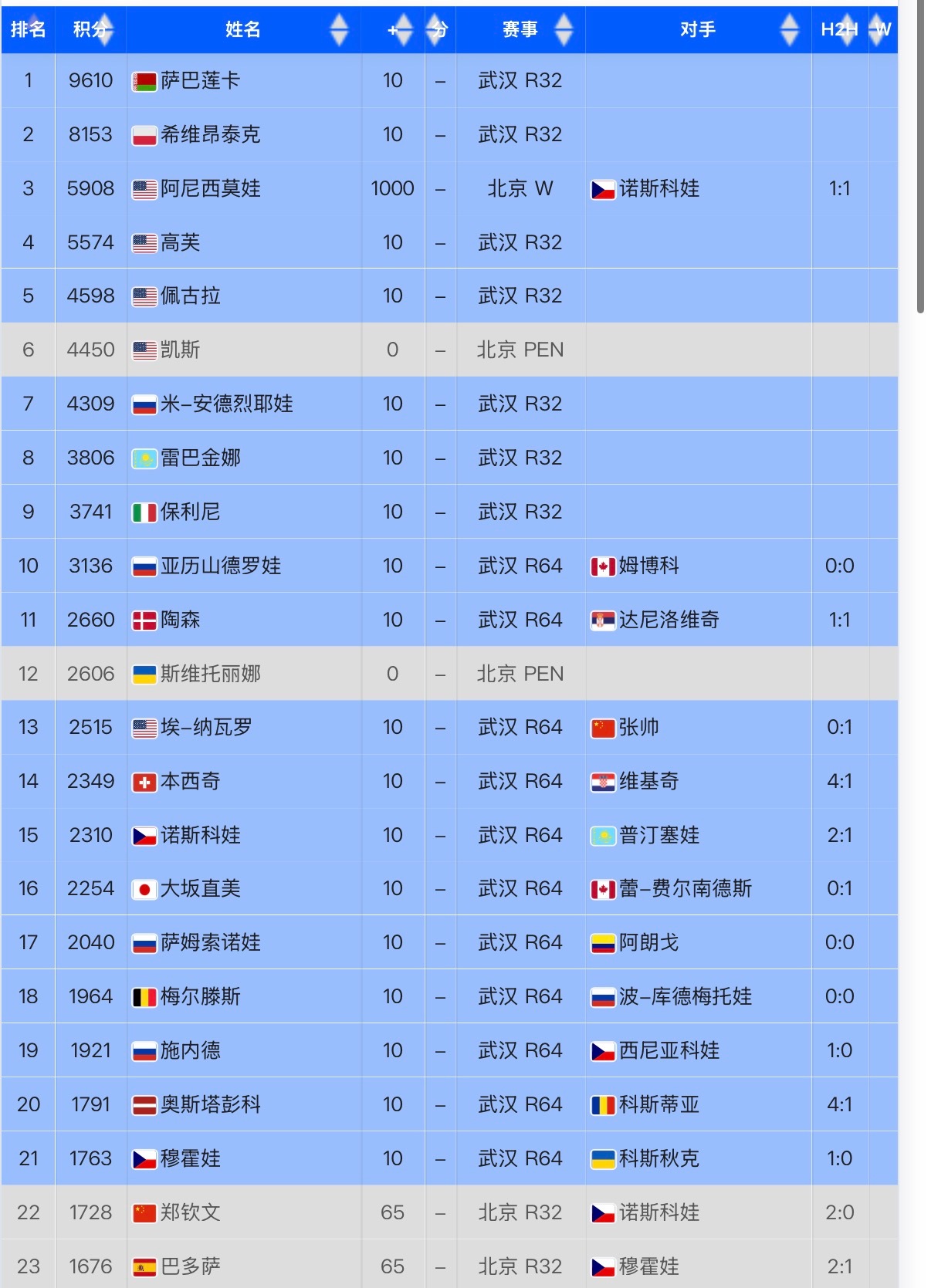 目前冠军排名超过高芙来到No.3