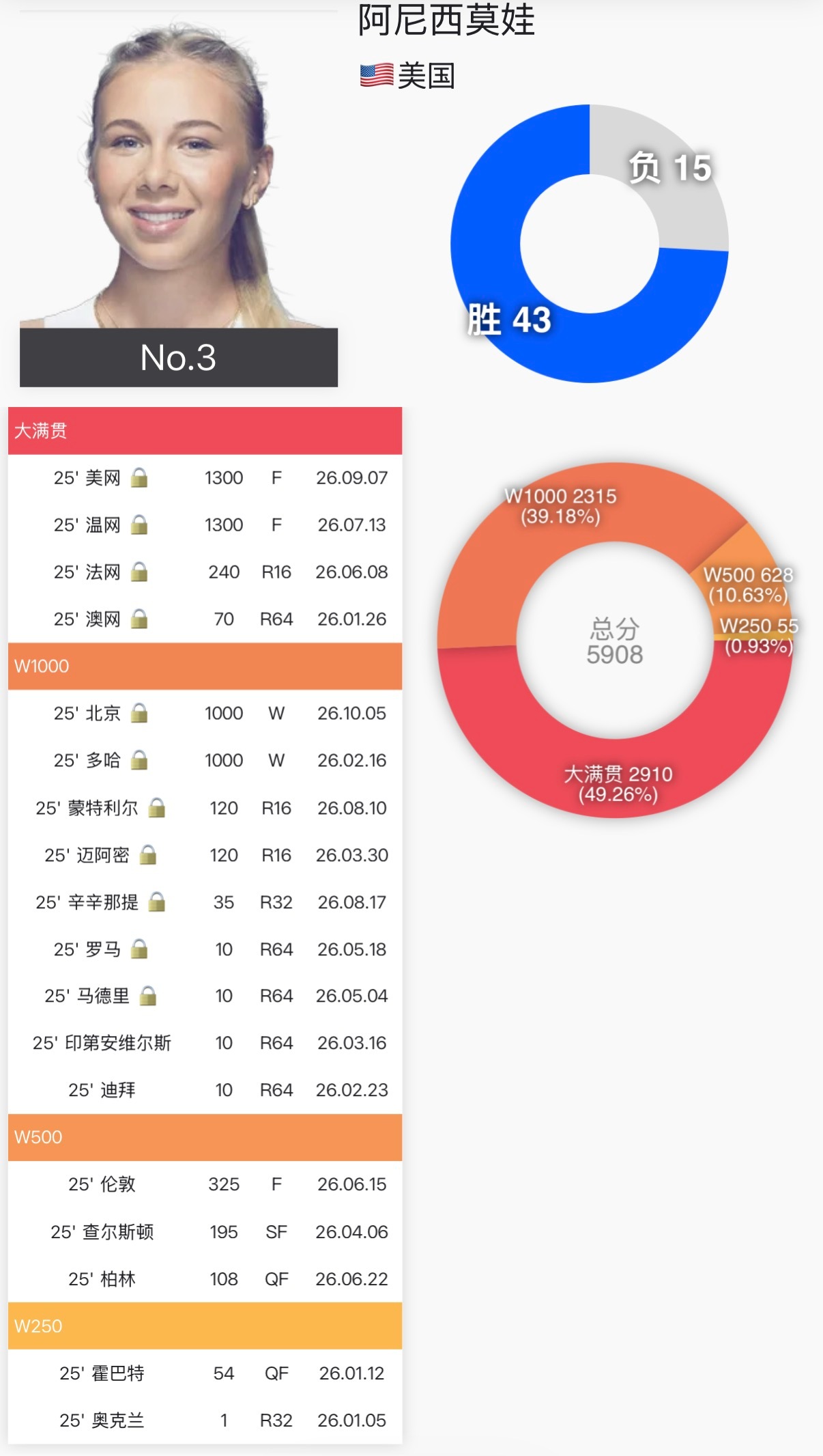 阿尼西莫娃中网夺冠🏆