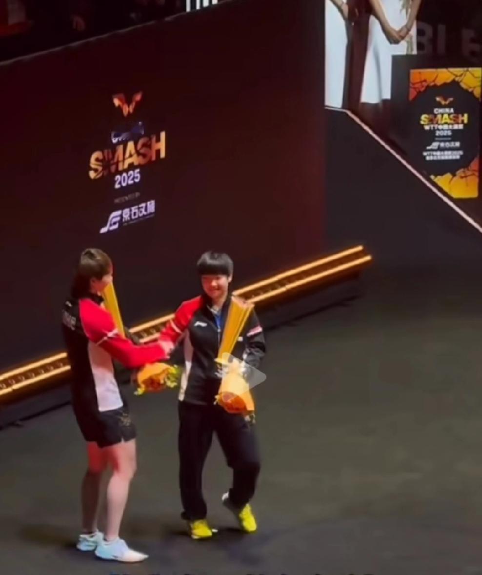 10月5号,北京举办的WTT中国大满贯,王曼昱拿下了女单冠军。比赛结束后,孙颖莎微笑着主动和王曼昱握手祝贺。孙颖莎这大格局真的是魅力无限啊!换做一般人,自己没得冠军可能心里多少都有点小情绪,孙颖莎大大方方的,这气度直接拉满。 而且她还把鲜花送给现场的球迷,她就是暖心的小天使!自己比赛完还想着粉丝,这细节真的太戳我了。 孙颖莎和王曼昱都超优秀,可我就是想说,孙颖莎这一系列操作真的太圈粉了。我现在就是一整个被她的格局震撼到,晕了晕了!!