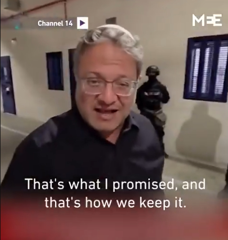 图2: 本-格维尔视察监狱 英国“中东之眼”网站视频截图