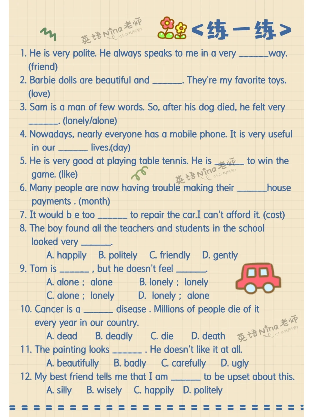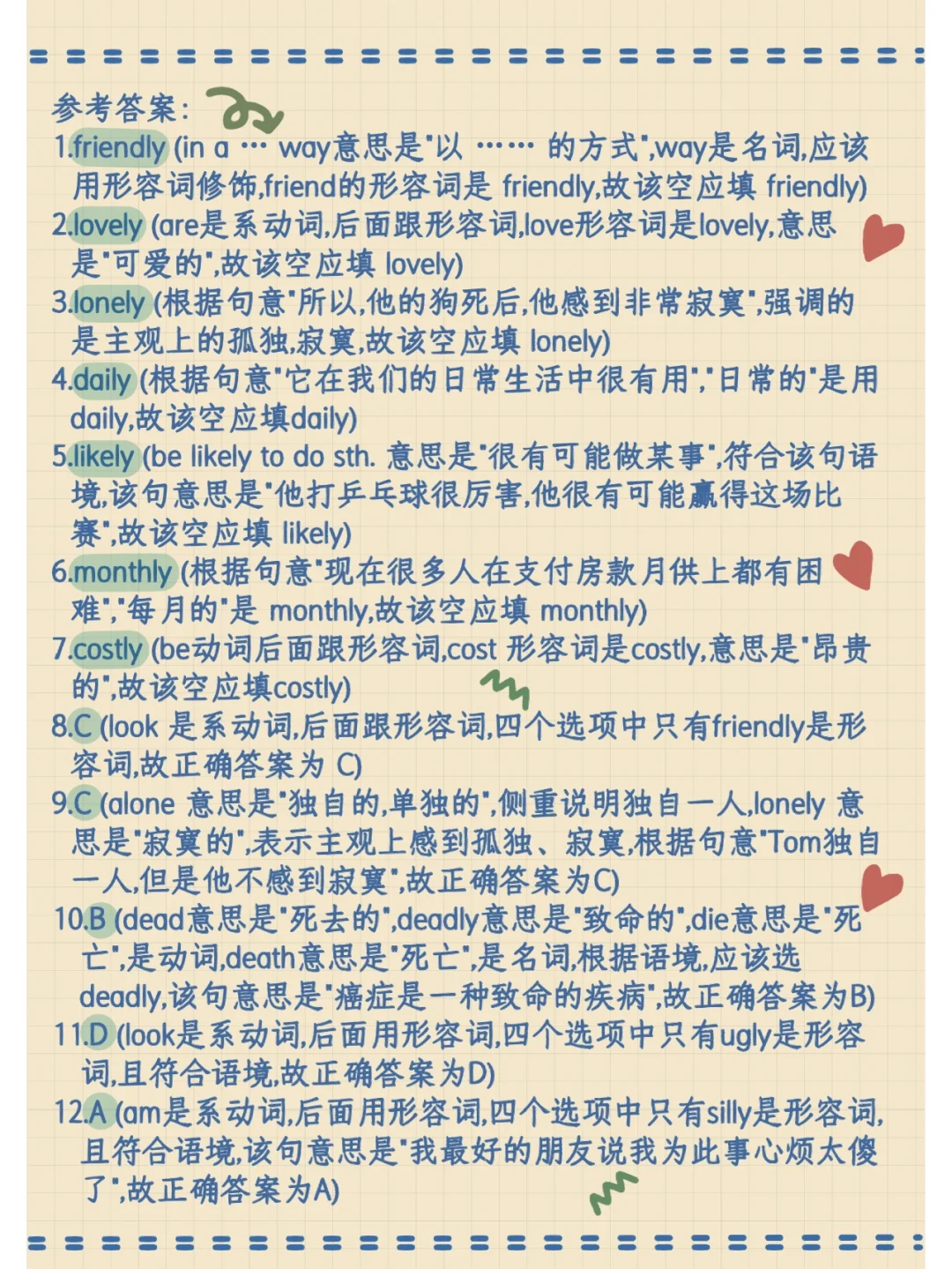 一张图搞定以ly结尾的形容词➕收藏记住哦!