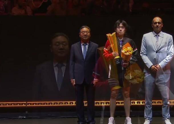北满赛男女单打颁奖仪式的花絮图片。 女队王励勤参与颁奖,国际乒联主席索林亲自为王曼昱颁发冠军奖杯。 男队王楚钦这个男单冠军拿的最为不易,在体力透支的情况下夺得,确实牛比克拉斯!