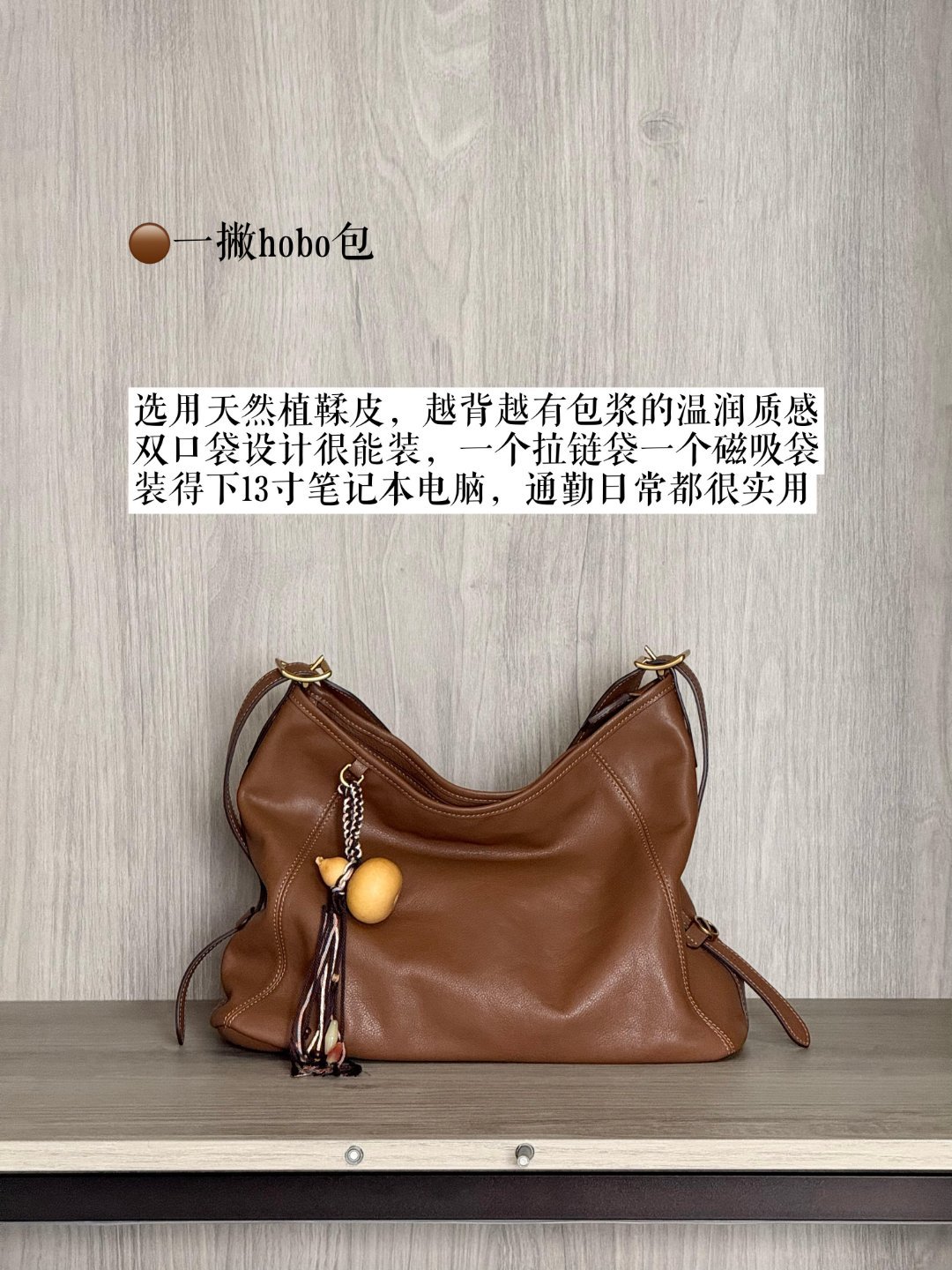 1. 一撇 hobo 包:软糯手感,满分包型,天然植鞣皮越背越润,双口袋能装 13 寸电脑。