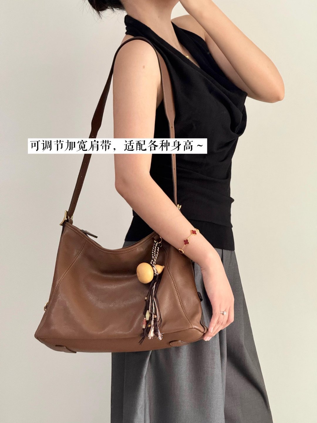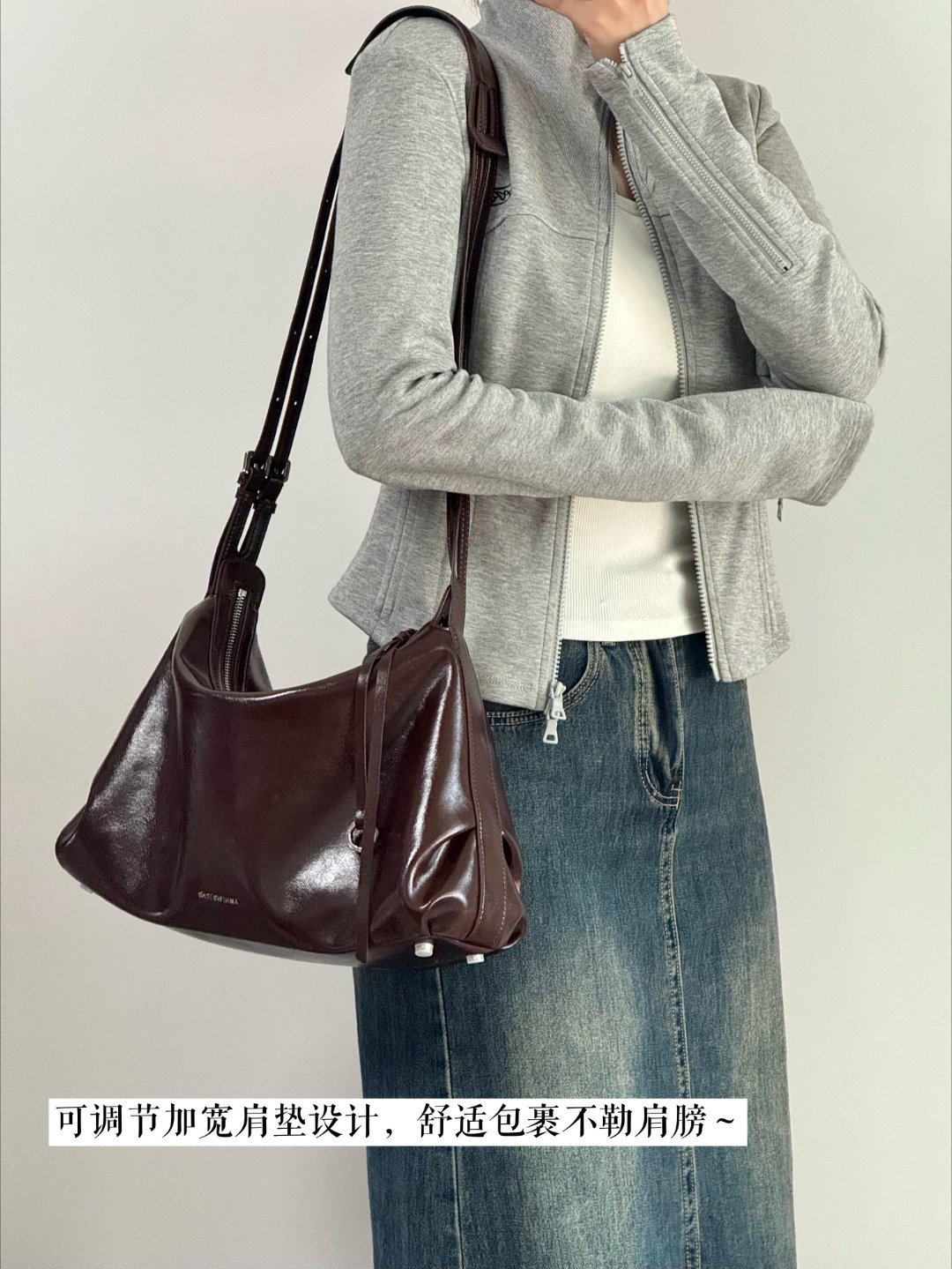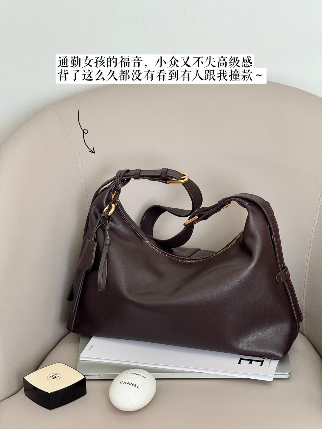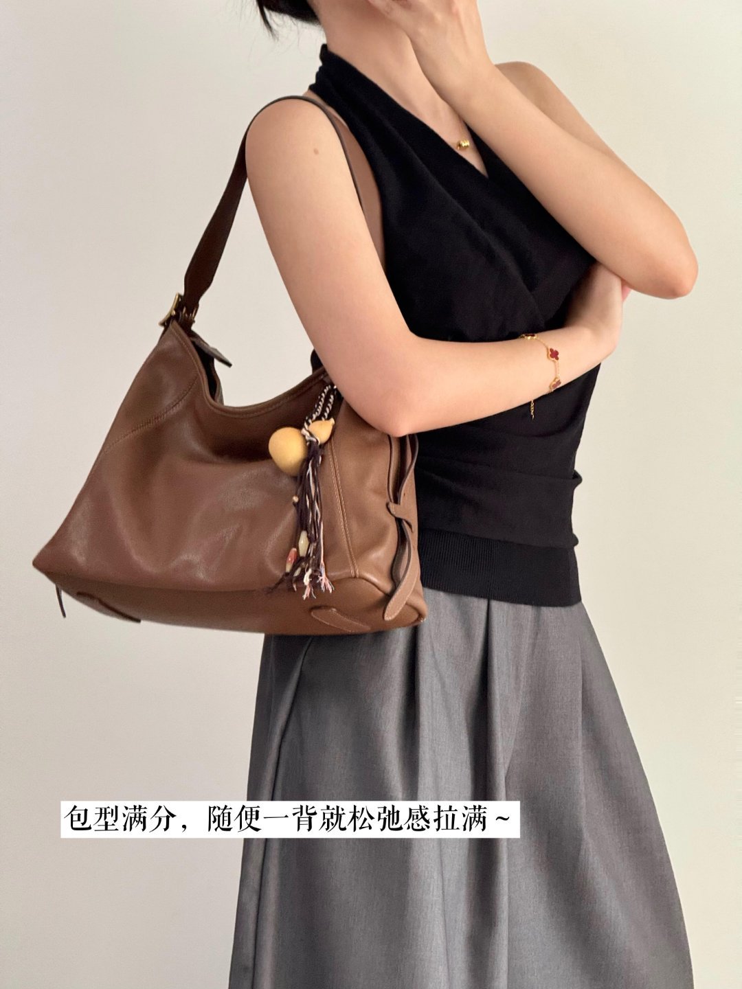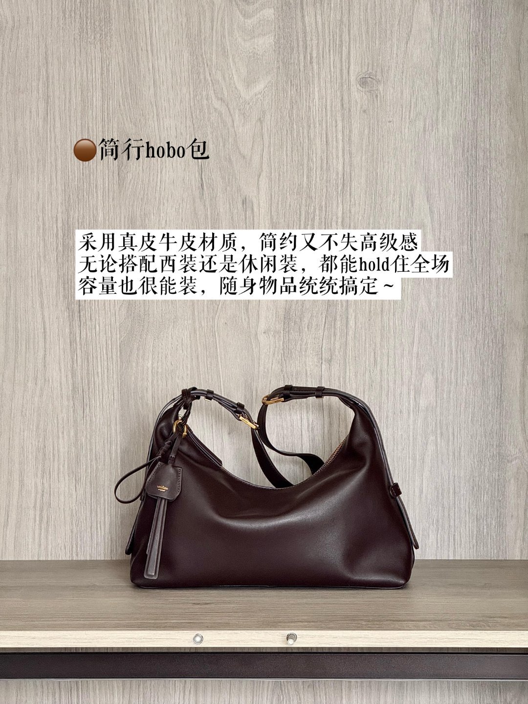2. 简行 hobo 包:真皮牛皮,简约高级,适配多风格穿搭,容量大且垂坠感佳。