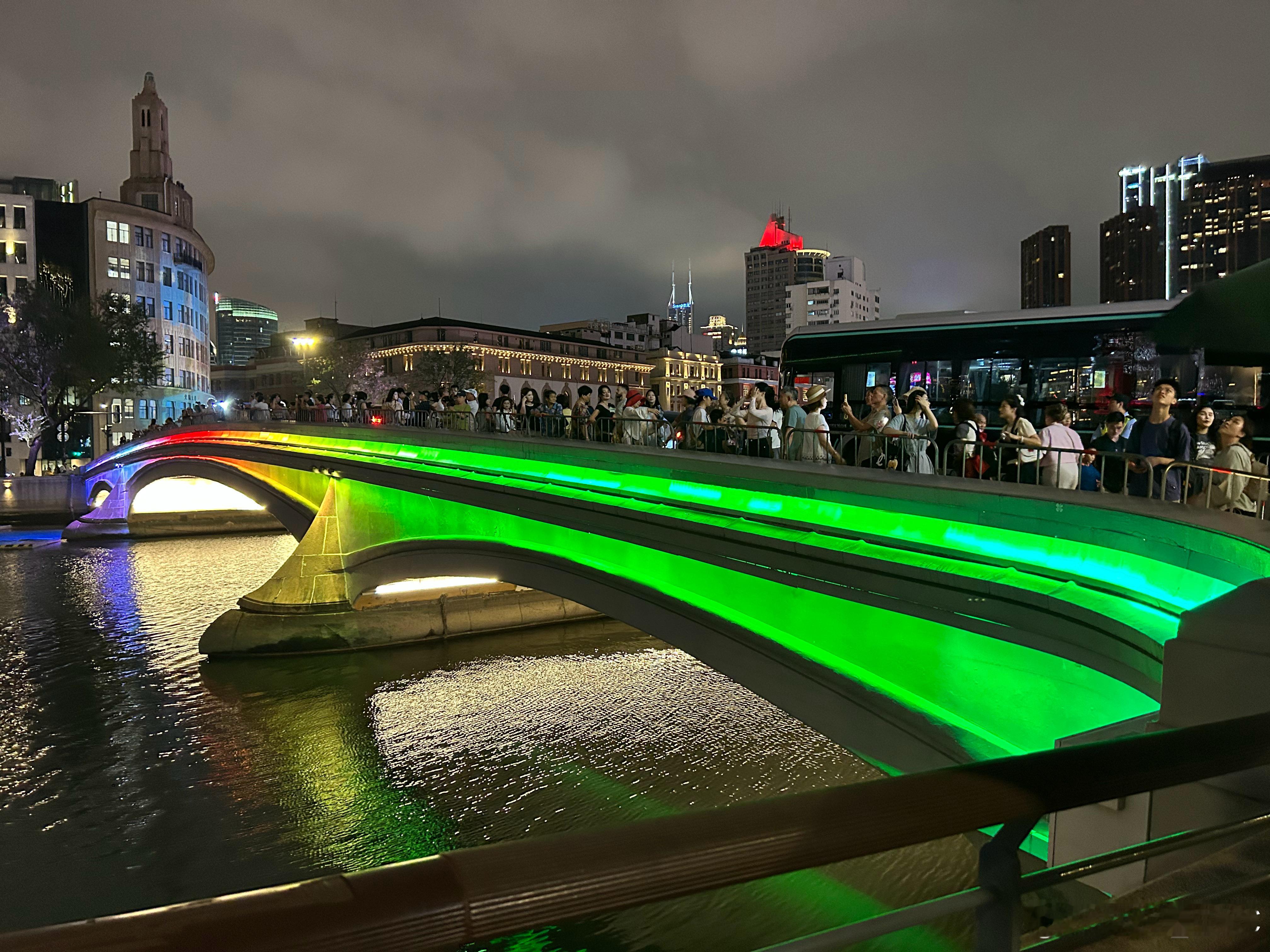 半夜十点半的乍浦路桥,还是人山人海啊。今年出门旅游的人这么多吗……