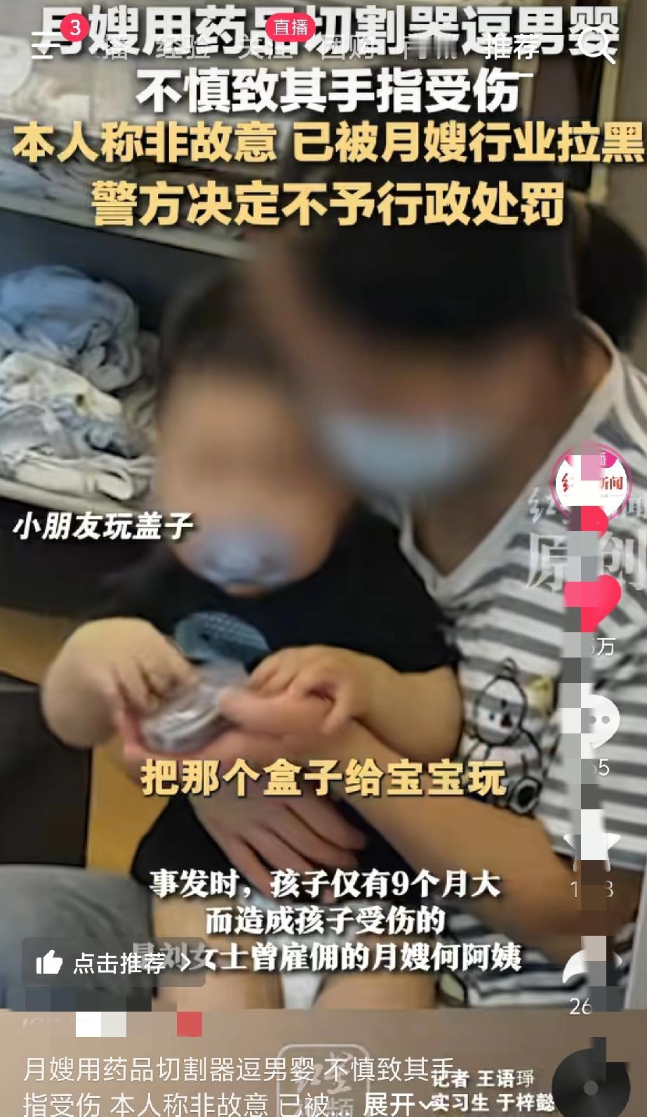 “万万没想到!”上海一名月嫂用药品切割器逗宝宝玩。结果没一会儿宝宝便大哭了起来。