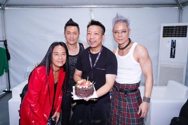 草蜢在後台為音樂總監何秉舜慶祝生日。
