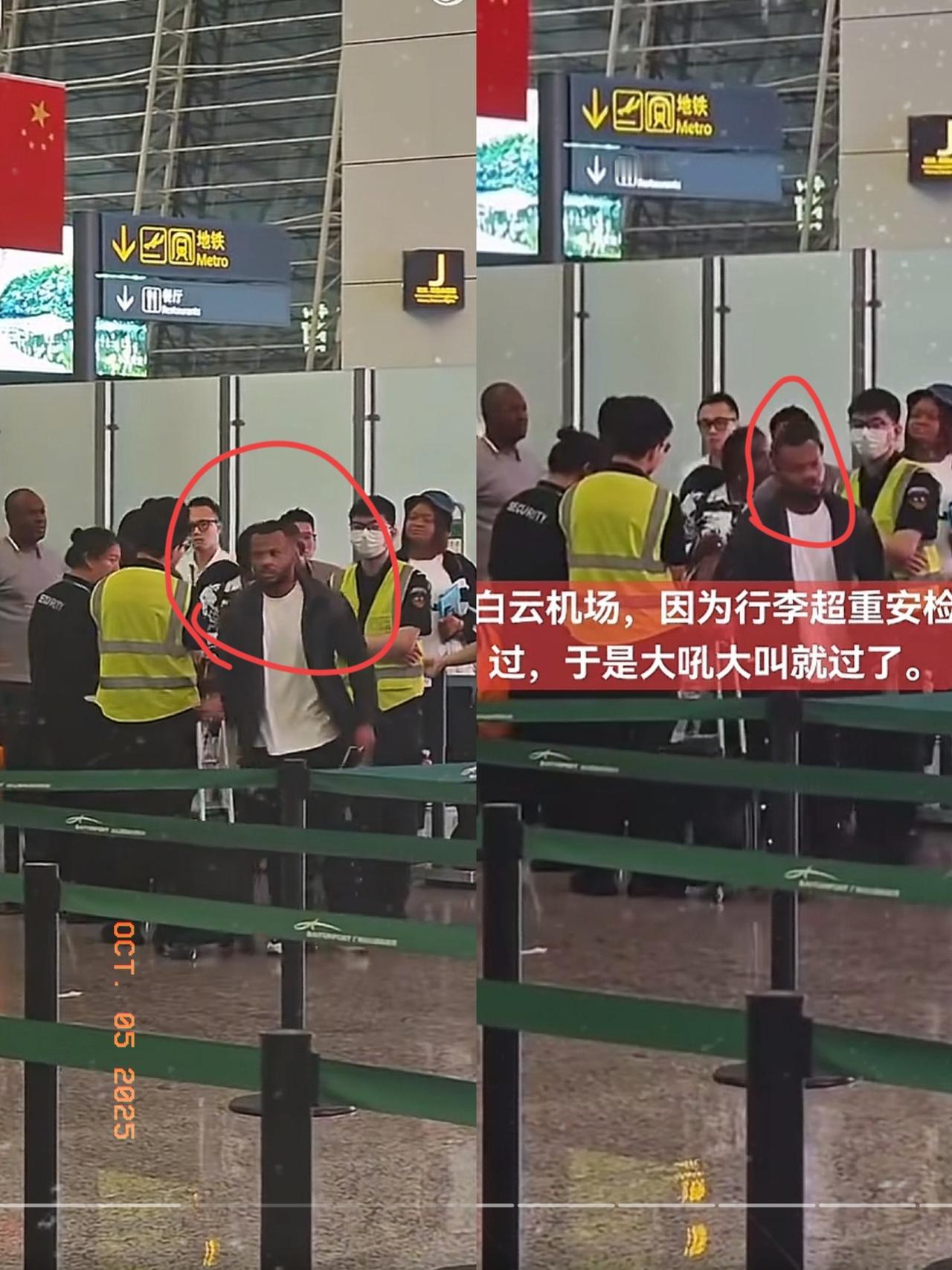 国庆期间在广州白云机场 出了件让人惊掉下巴的事儿! 一黑人行李 超重,机场工作人员依规阻拦 他竟大声呵斥,还直接推开工作人员 强行闯登机口。 当时机场人挤人,这一幕特扎眼 这黑人行李超规,本该按流程处理 他却情绪失控。 但话说回来,哪能因为着急就撒野呢 推搡工作人员不仅危险, 还耽误大家行程。 按规矩办事天经地义 特殊情况也得沟通解决。 大家觉得,遇到这种事该咋更好处理?