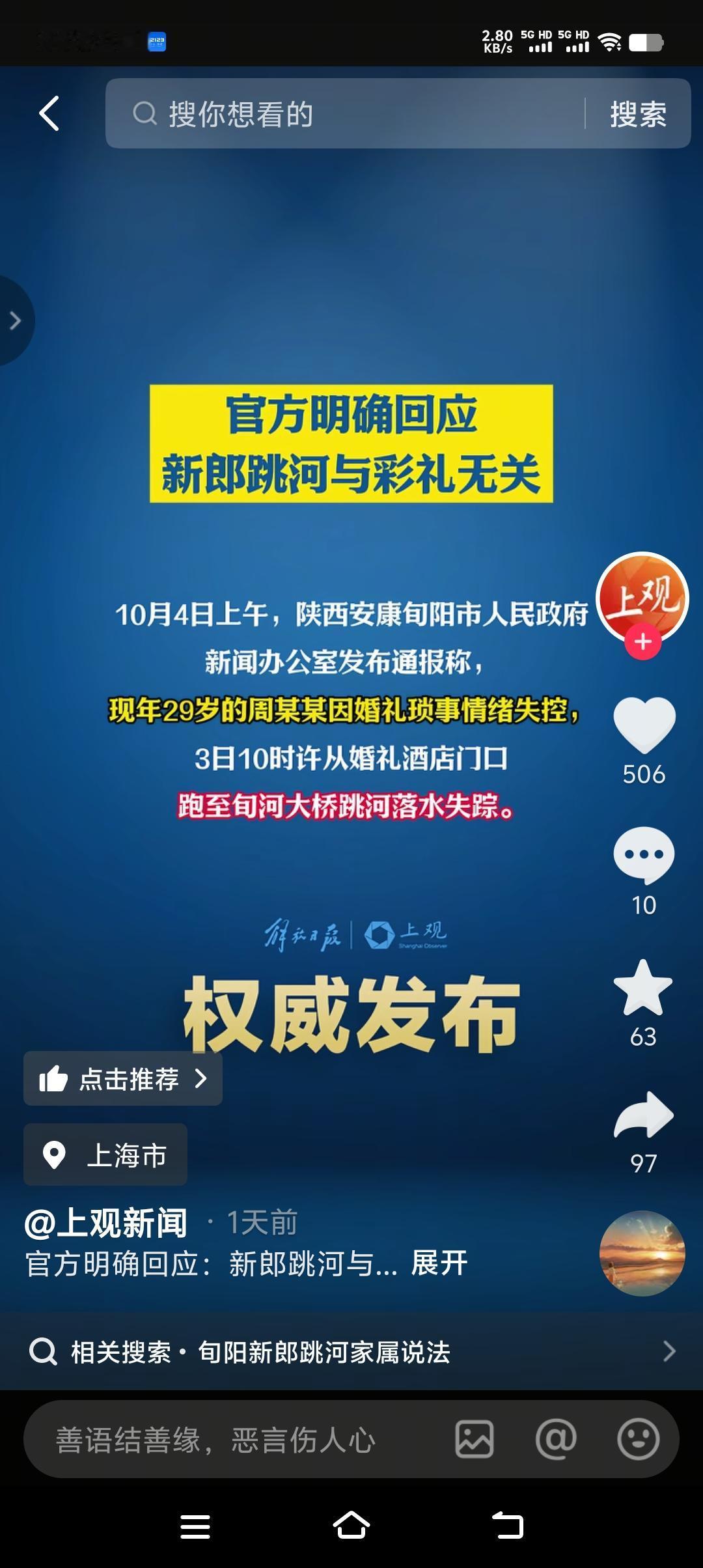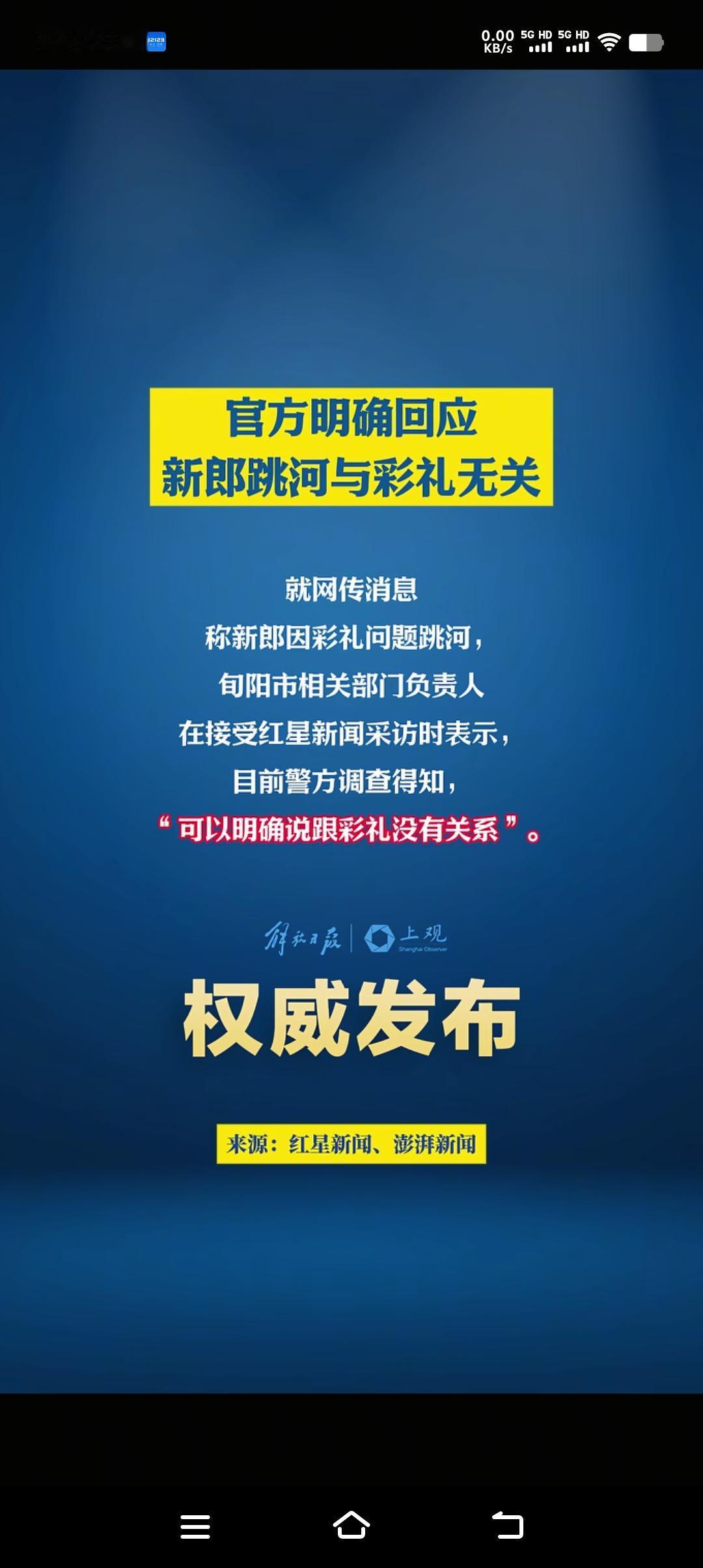 大家就别胡乱猜测了,官方已经说的清清楚楚,新郎跳河与彩礼无关。两人是高中同学,而
