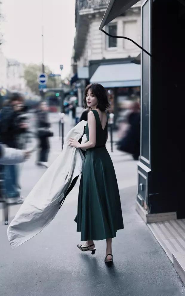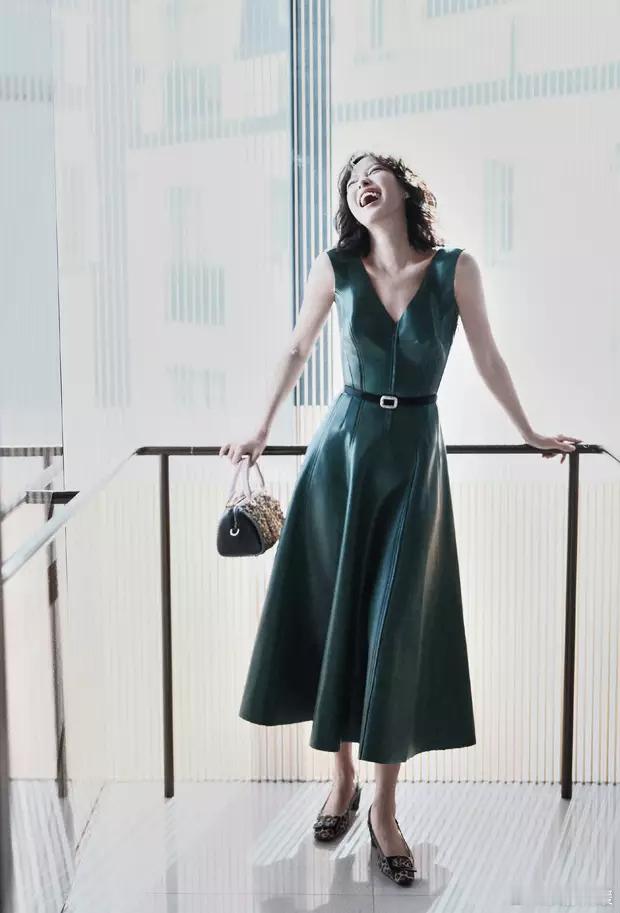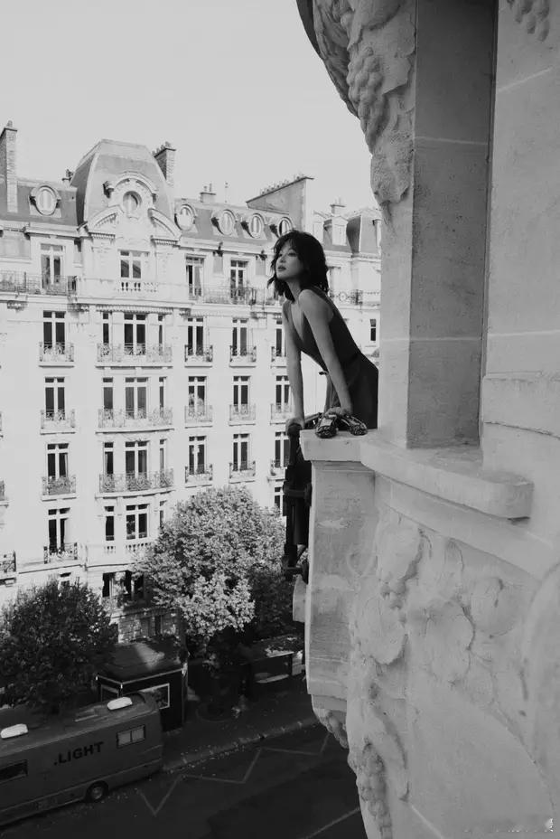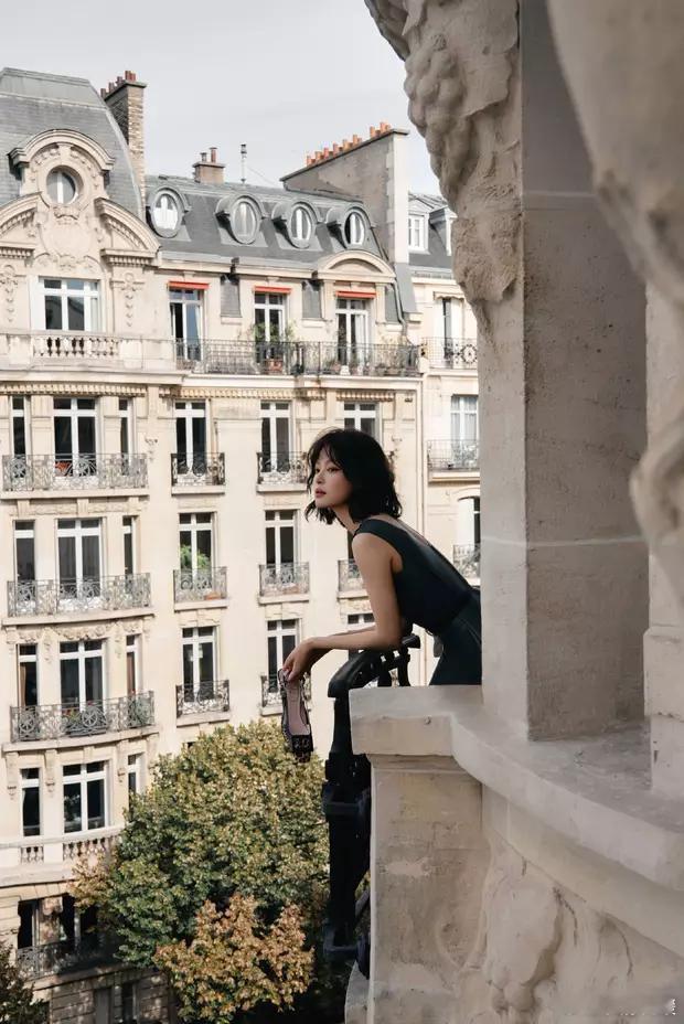 分享娱乐[超话]分享娱乐辛芷蕾站阳台上眺望巴黎街景穿绿色皮裙妩媚迷人