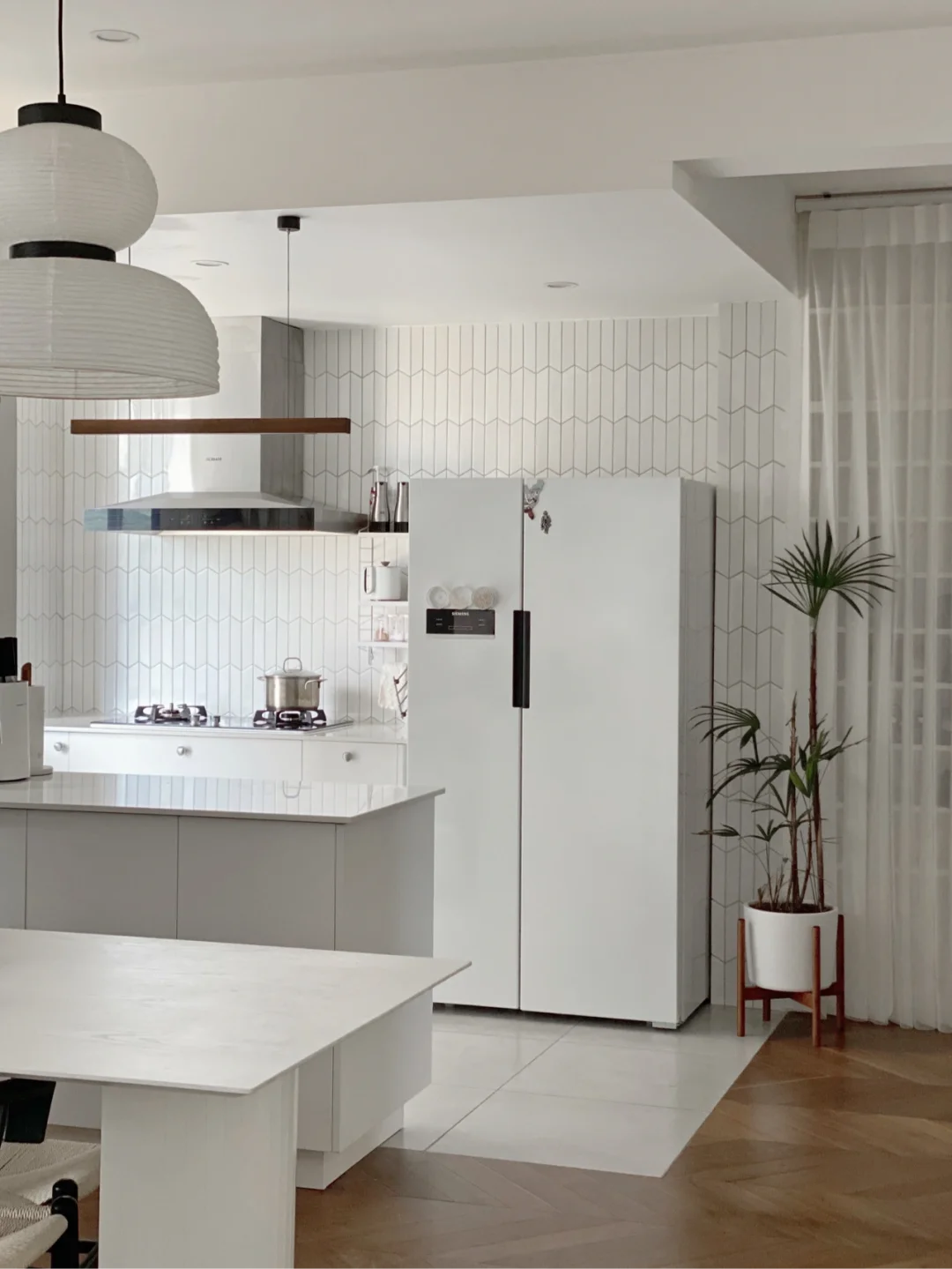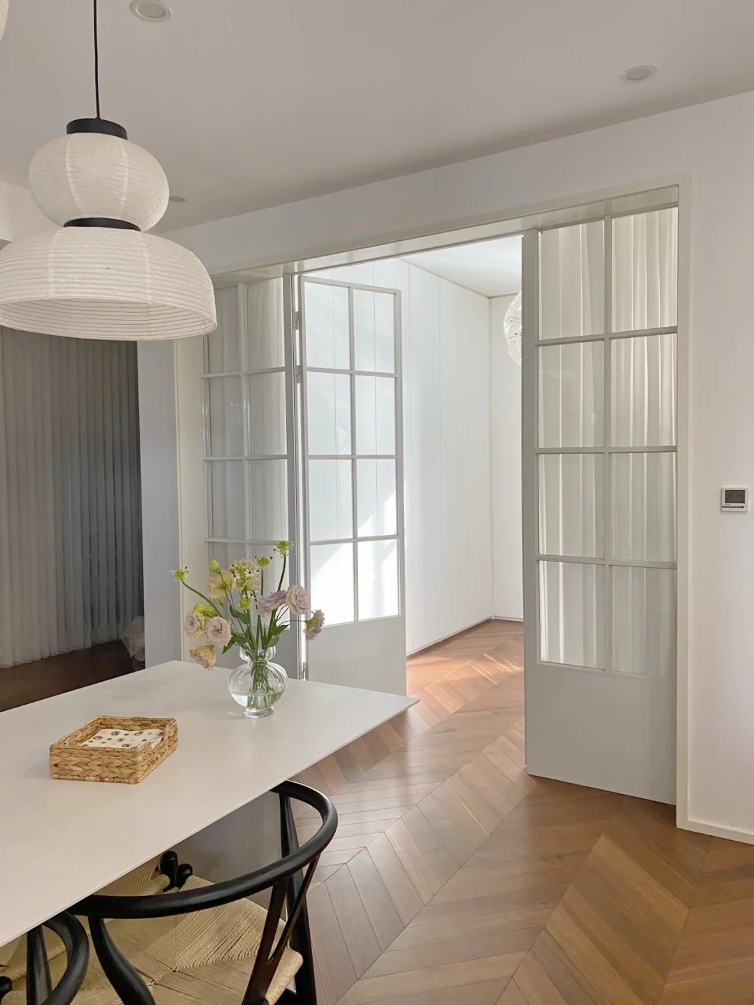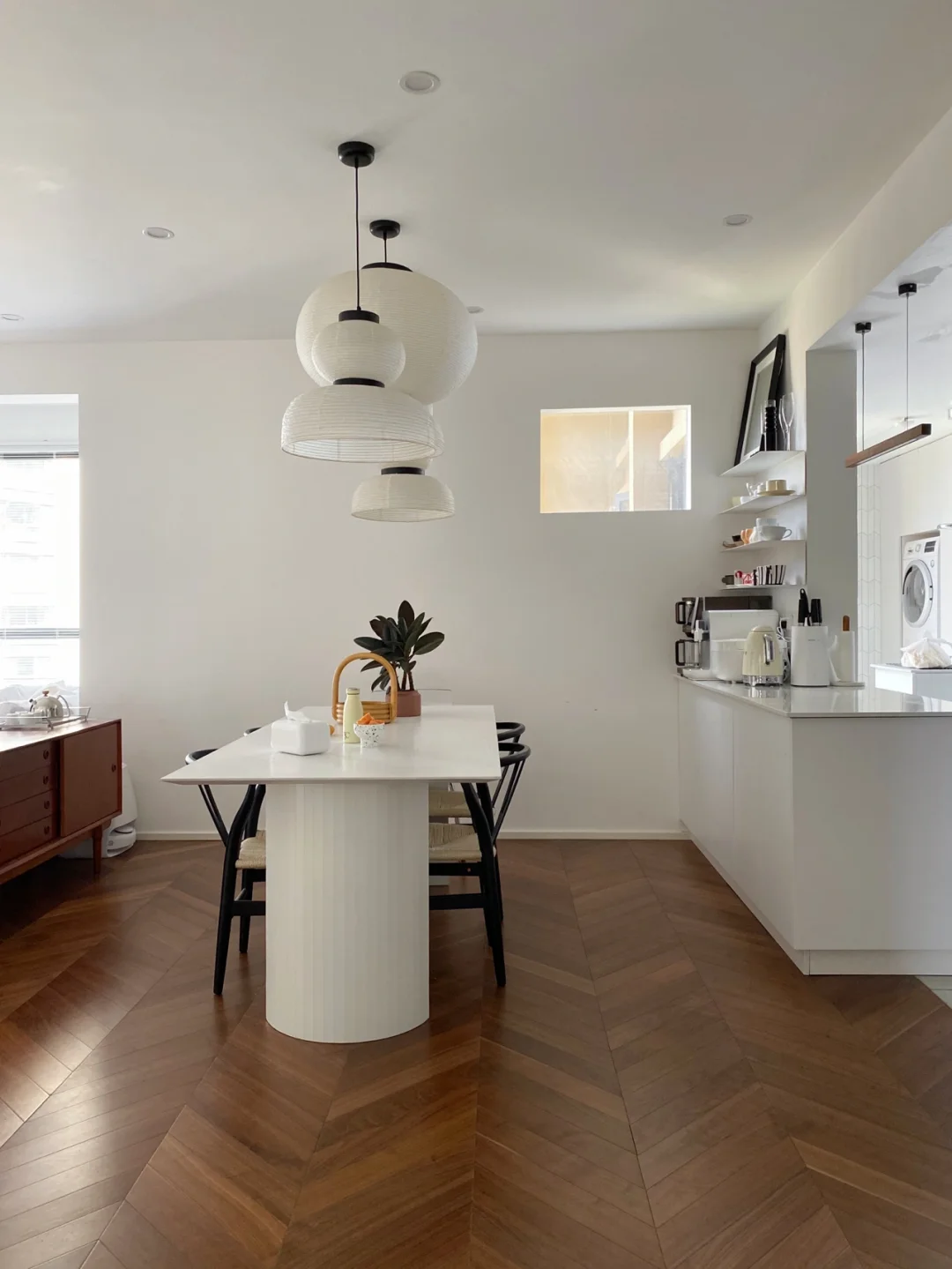 整个户型几乎没有浪费的地方,没有鸡肋的过道和飘窗(⚠️很多姐妹问的餐厅小窗是房开做的,原本有框,只是被我改成了无框)