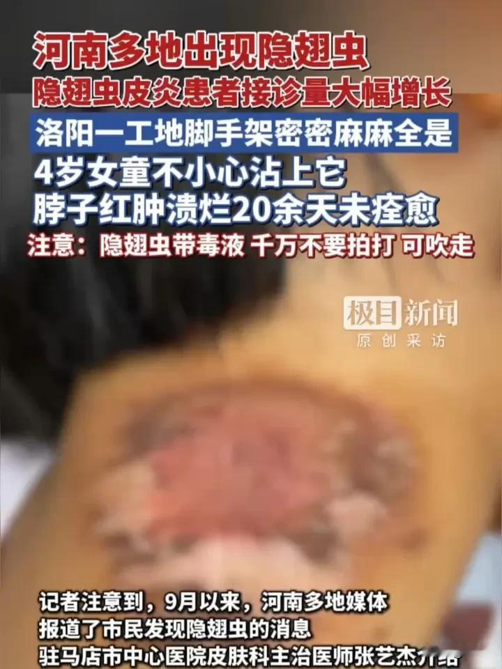刚刚刷到洛阳一工地的视频,四五十米高的脚手架和纱网上爬满了隐翅虫,工人们就在旁边干活,查了下这虫子的来头,一查才发现这东西简直是“行走的硫酸” 洛阳市园林绿化中心的专家说,这虫子偏爱高温高湿的天气,最近洛阳的气候正好适合它们繁殖,而且潮湿的环境更易滋生 它根本不咬人,但体内的毒液pH值只有1-2,比醋还酸,一旦拍死或压碎,毒液沾到皮肤就会引发皮炎,又红又肿还起水泡,严重的会溃烂留疤 南阳就有个4岁女童沾上毒液,脖子红肿溃烂20多天还没好利索 是禁止焚烧桔杆引起的虫害,美国收割后就是焚烧,这样害虫的卵子就没有了。也可减少用农药,又可疏松土壤。焚烧桔杆有百利而无一害 落在身上千万别拍,轻轻吹走或弹掉就行 万一不小心拍死了,立刻用肥皂水冲 别乱涂牙膏酒精,严重了赶紧就医 晚上开窗别开灯,因为它们有趋光性 家里放盆薄荷还能驱避 现在洛阳不少医院都接诊了这类患者,工地上的师傅们可得多注意 这小东西看着不起眼,杀伤力是真不小,记住“不拍打、快冲洗”准没错