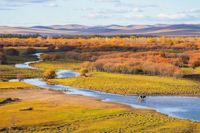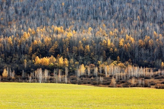 呼伦贝尔的秋天,金色的树叶枝丫疏离,直抵秋天的深处,美到你的心底。