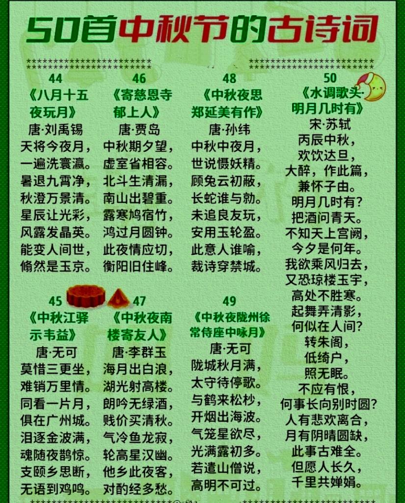 床前明月光 中秋月饼香 举头望圆月 祝友福安康
