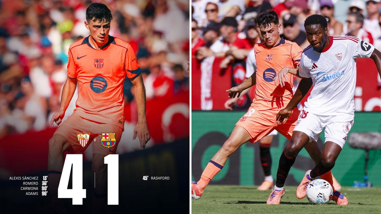 西甲:巴塞罗那客场1-4惨败塞维利亚,距榜首皇马2分。 桑切斯点射命中弑旧主,拉什福德破门,莱万失点。