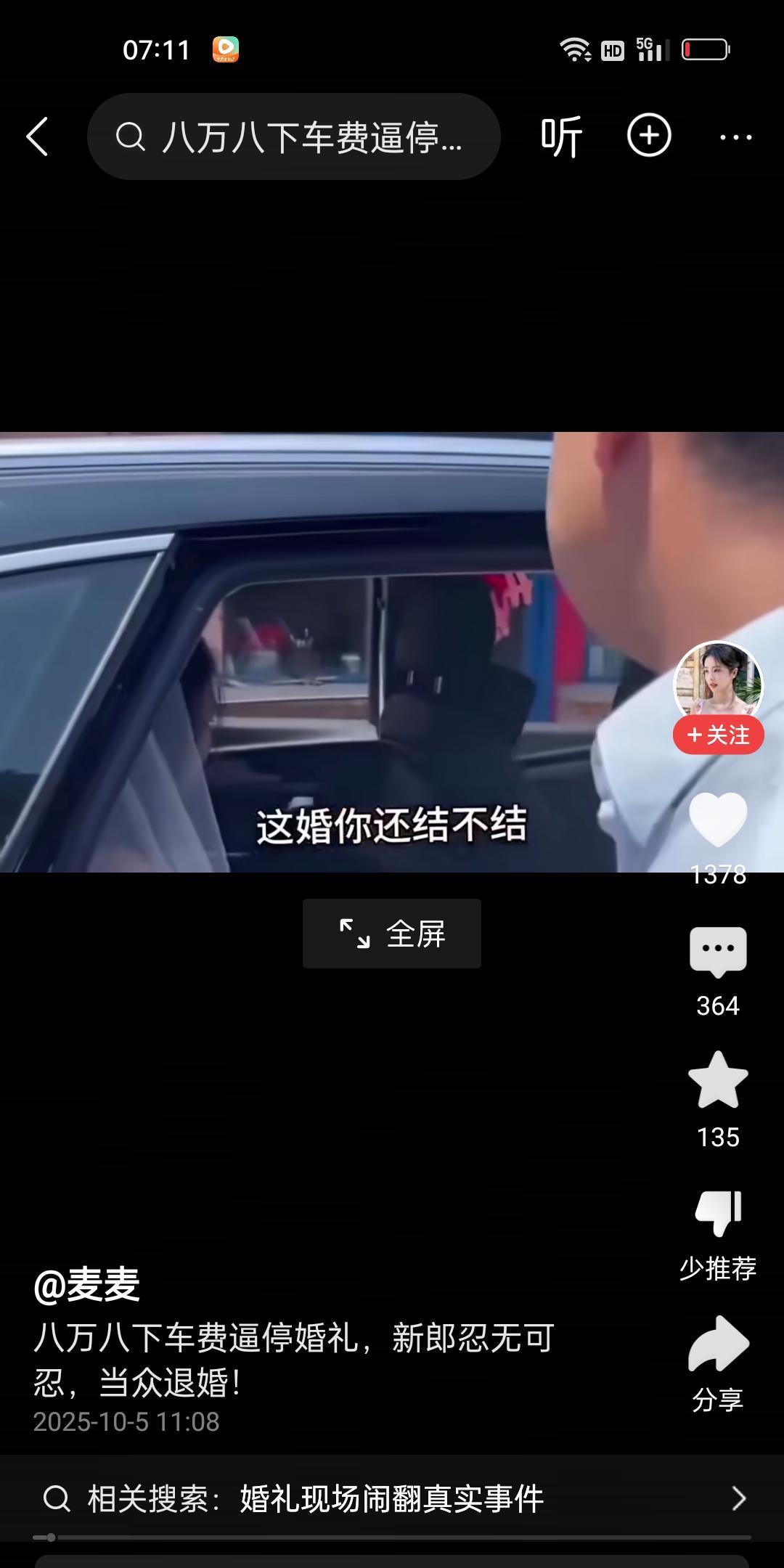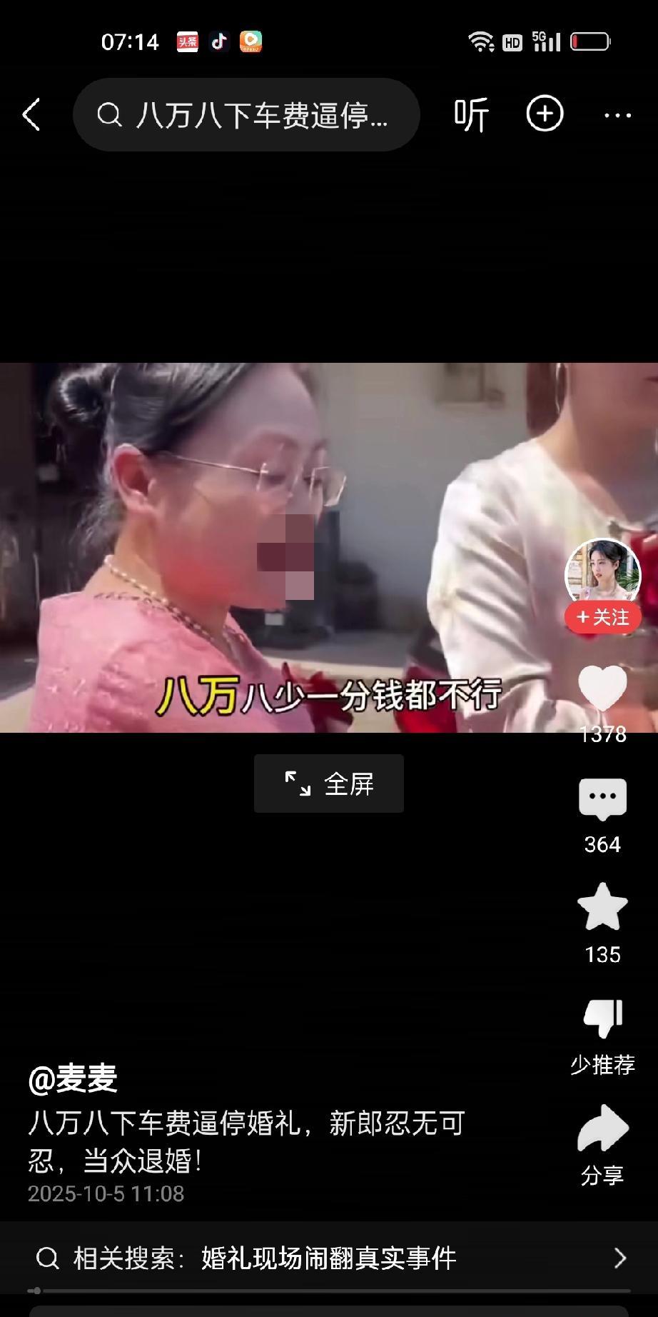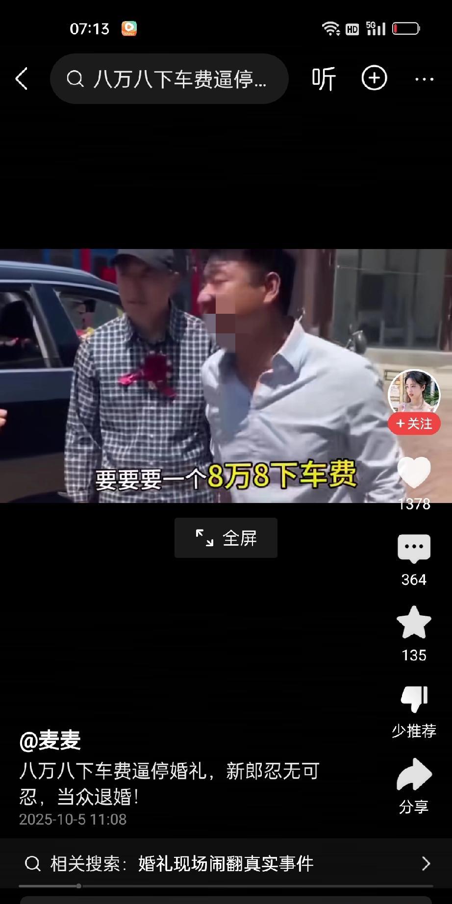 婚礼当天新郎正要接新娘下车,新娘却止步了,临时说要8万8的下车礼。新郎当时就炸了