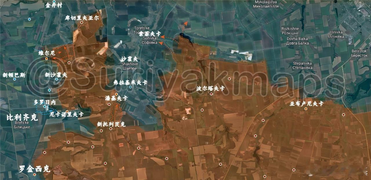 4、多布罗皮利亚:俄罗斯军队完全占领了新托列茨克,并再次到达了弗拉基米夫卡郊区,还占领了新沙霍夫以北的一系列阵地,并部分进入维尔尼。乌军在新的进攻后成功夺回了多罗日内。同时,俄罗斯 DRG 开始将其行动扩展到附近的索菲夫卡郊区和新帕夫利夫卡以东。