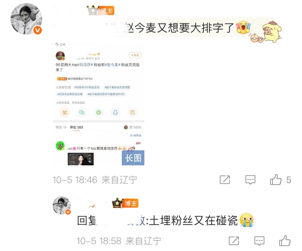 刘浩存fans怎么和赵今麦fans交流起来了,究竟发生了什么​​​