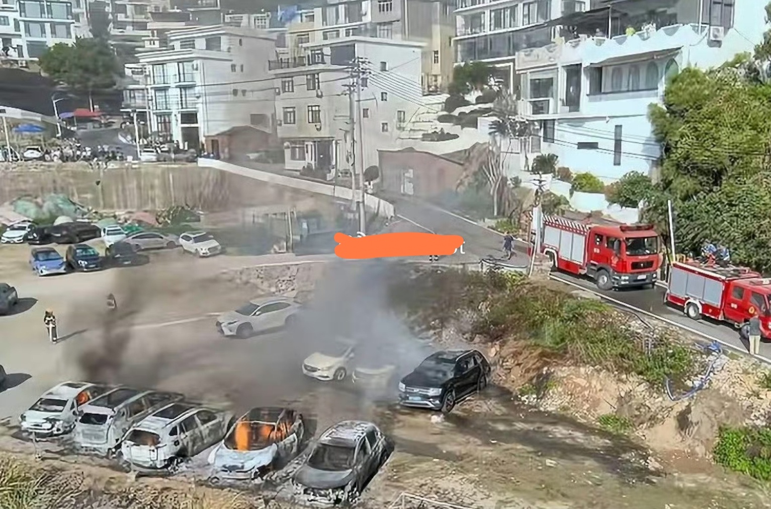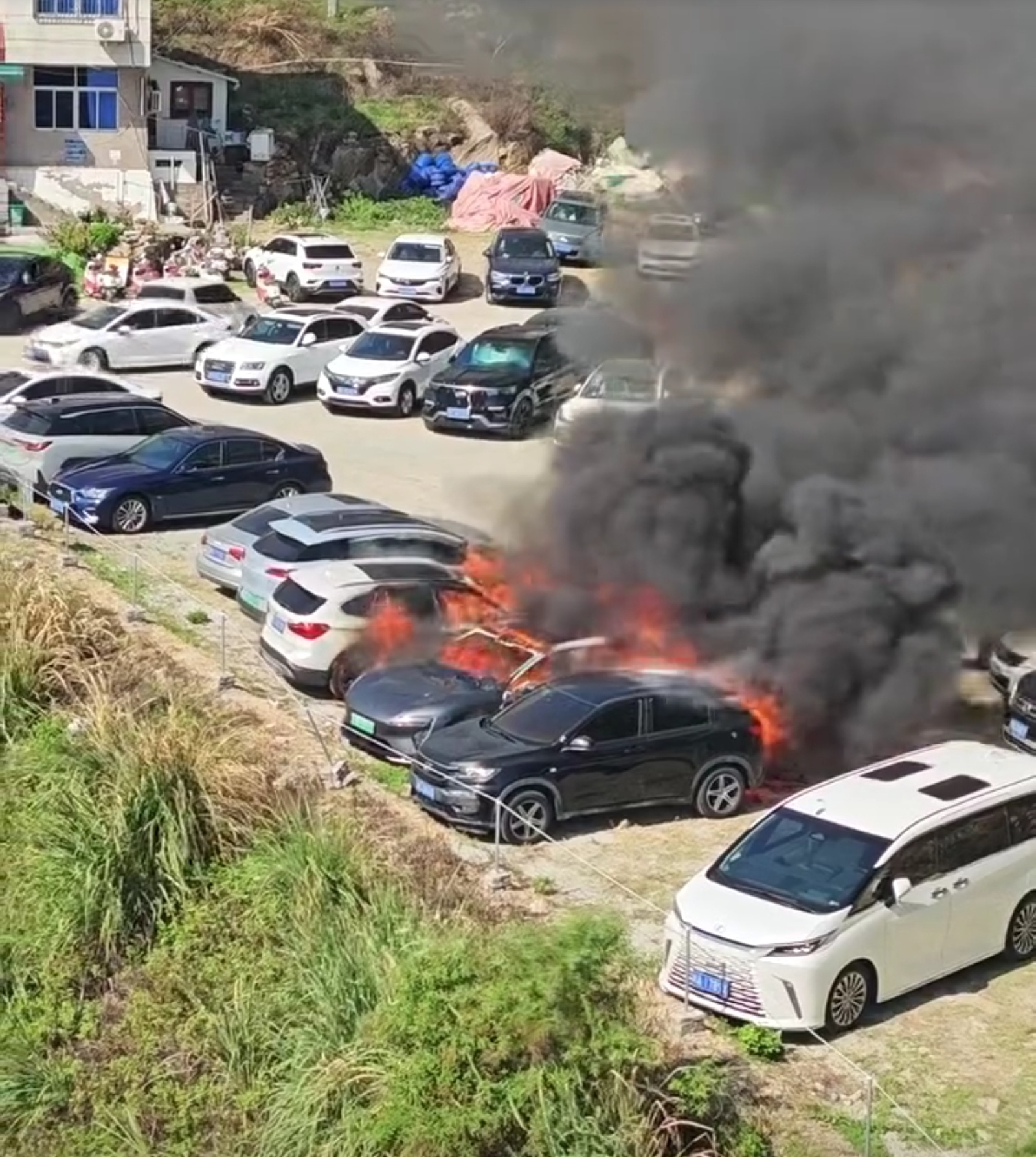 福建停车场着火那个视频后续来了,不光着火的车烧没了,保守估计周围6个车都被烧了。