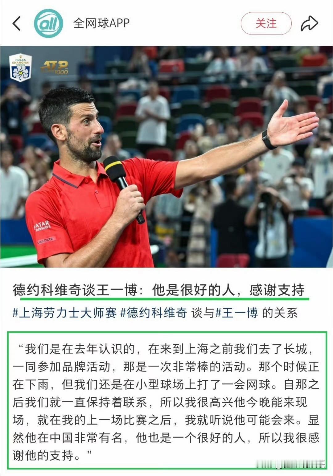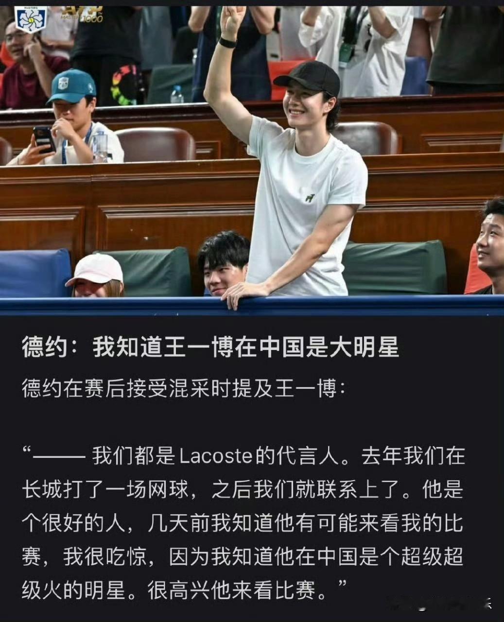 2025年10月5日,上海网球大师赛的赛场,因一场特殊的“见面”而格外闪耀。看台上,王一博身着简约白T,帽檐微压,目光却灼灼——他是来为偶像德约科维奇助威的。当德约在赛场上瞥见这位特殊观众,立刻扬起手臂,遥遥致意。王一博亦起身,挥手、比心,动作间满是对偶像的敬意与相见的雀跃。赛后,德约握着话筒,特意将这份喜悦分享给全场:“一博,谢谢!” 这声跨越领域的互动,是体育与娱乐的温柔碰撞,更是热爱的双向奔赴。在竞技的热血与追星的热忱里,我们看见,对梦想的执着从不会因领域不同而隔阂,它如赛场的球一般,在每一份真诚里传递、回响,谱写出青春里最动人的篇章。上海网球公开赛 王一博名场面
