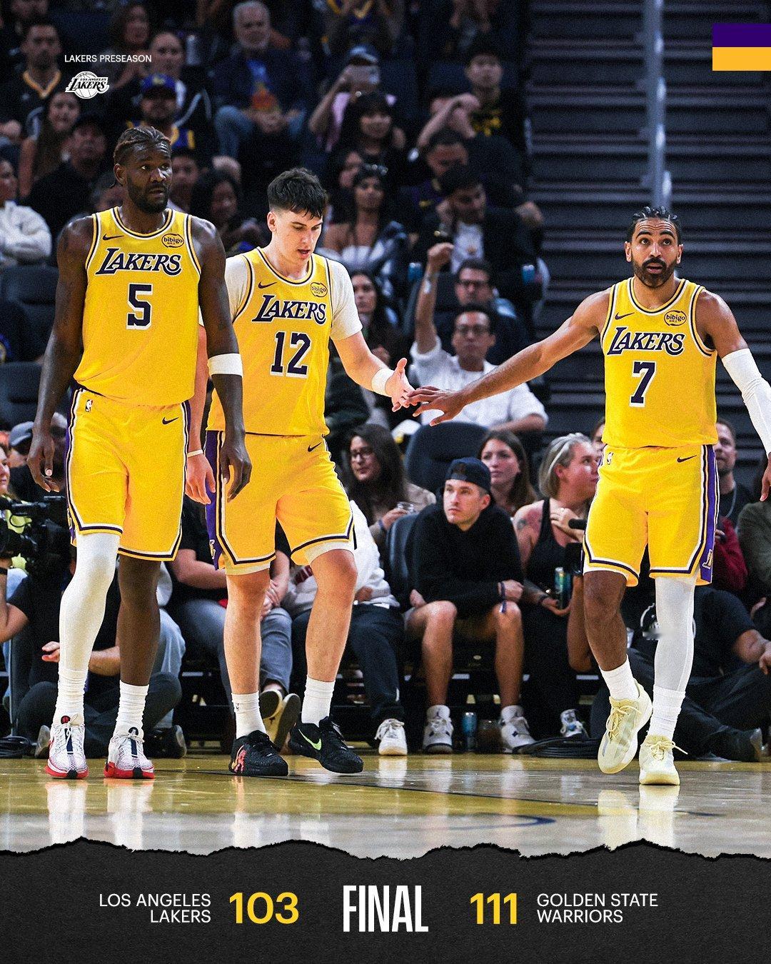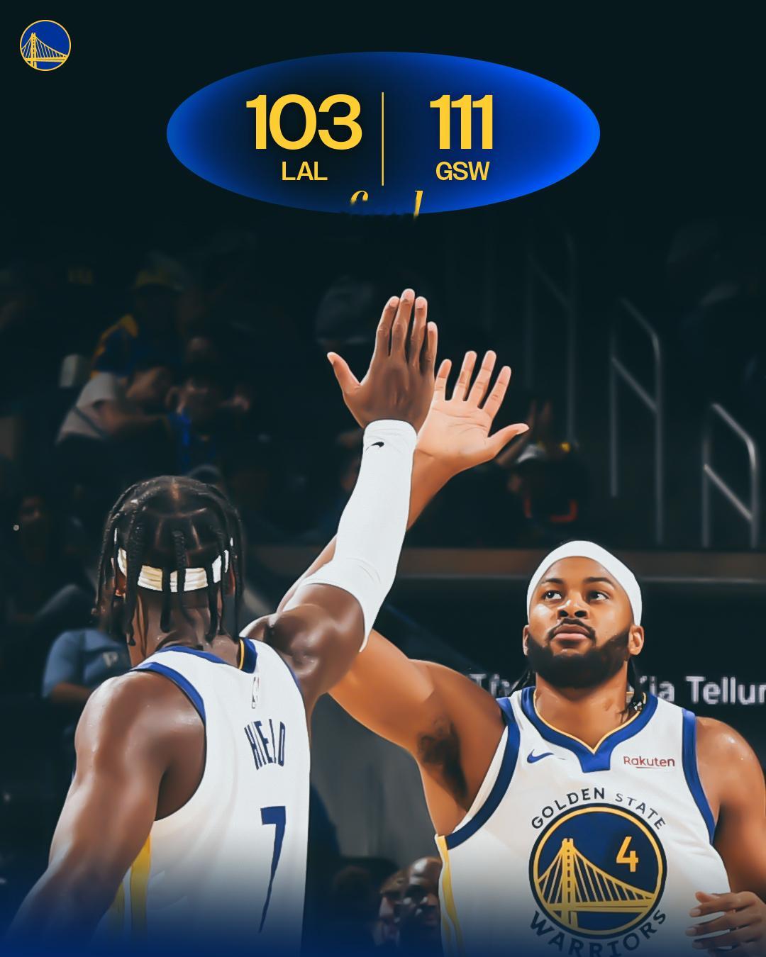 NBA季前赛,勇士力克湖人,库里半场高效14分,穆迪拿下全场最高19分,霍福德首秀3分4篮板3助攻3盖帽,库明加替补出战5分6篮板4助攻,巴特勒9分4篮板,艾顿7分7篮板,文森特16分5助攻,拉拉维亚10分,范德彪9分7篮板4助攻3抢断,布朗尼5分5失误贡献单手补扣。
