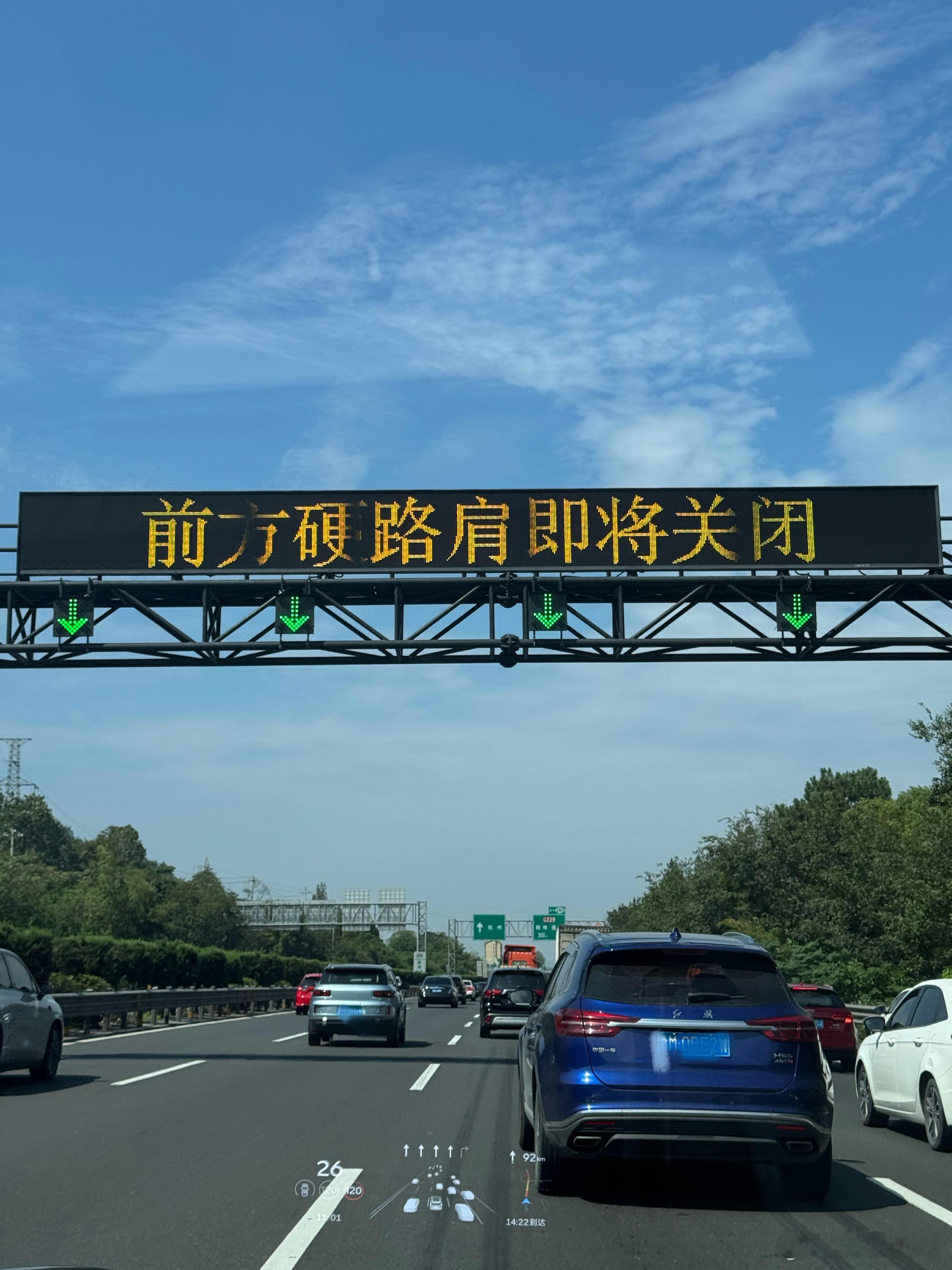 节假日高速车流量大,一些路段会开放应急车道,通常会有路标或者大喇叭提示,可以借用