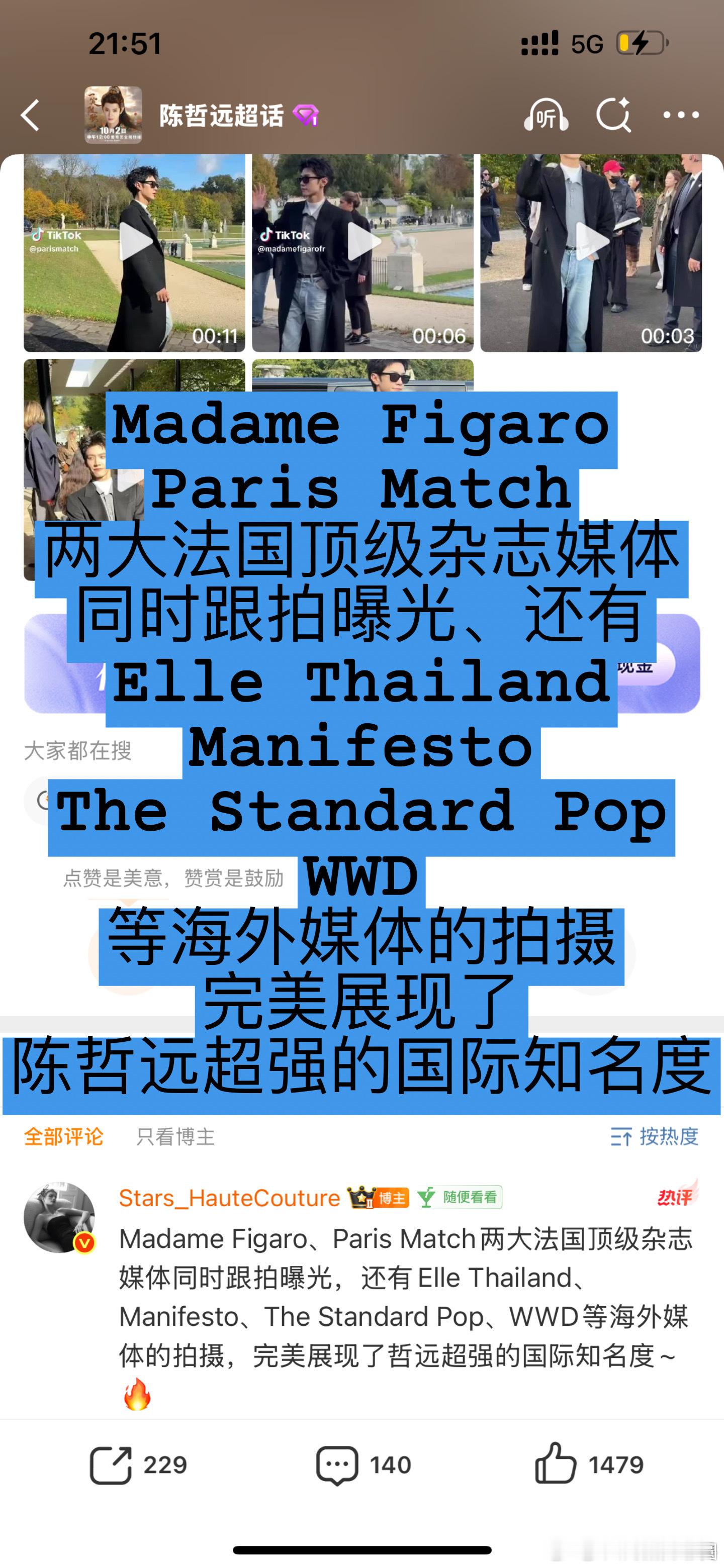 陈哲远 首次巴黎看秀登上泰国和马来西亚2国趋势!两大法国顶级杂志跟拍曝光!四大海外媒体拍摄、新加坡媒体追拍陈哲远单人!