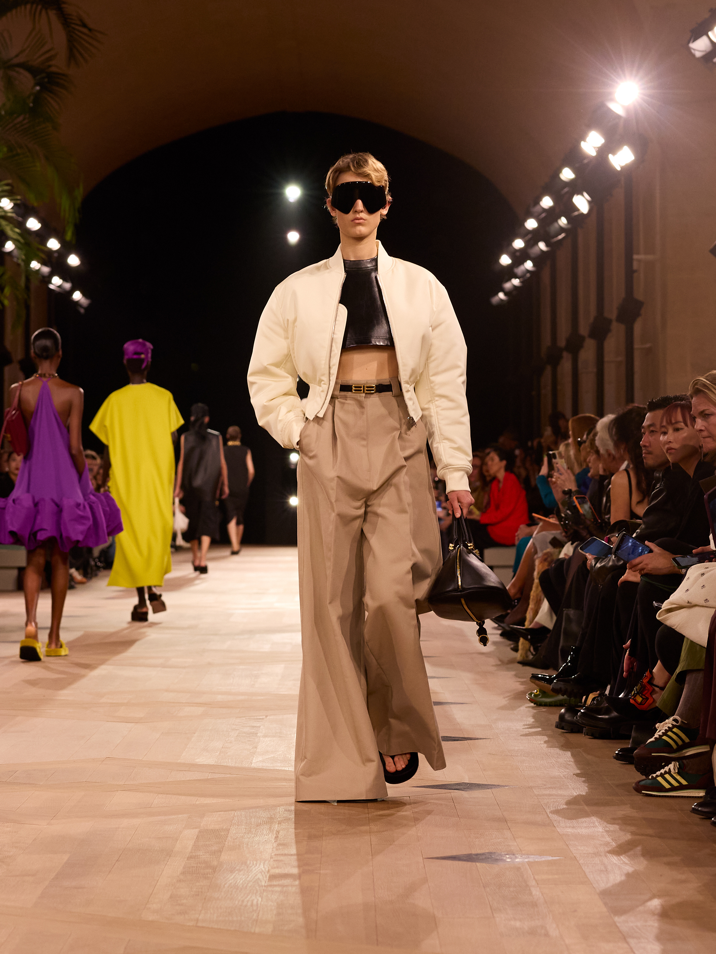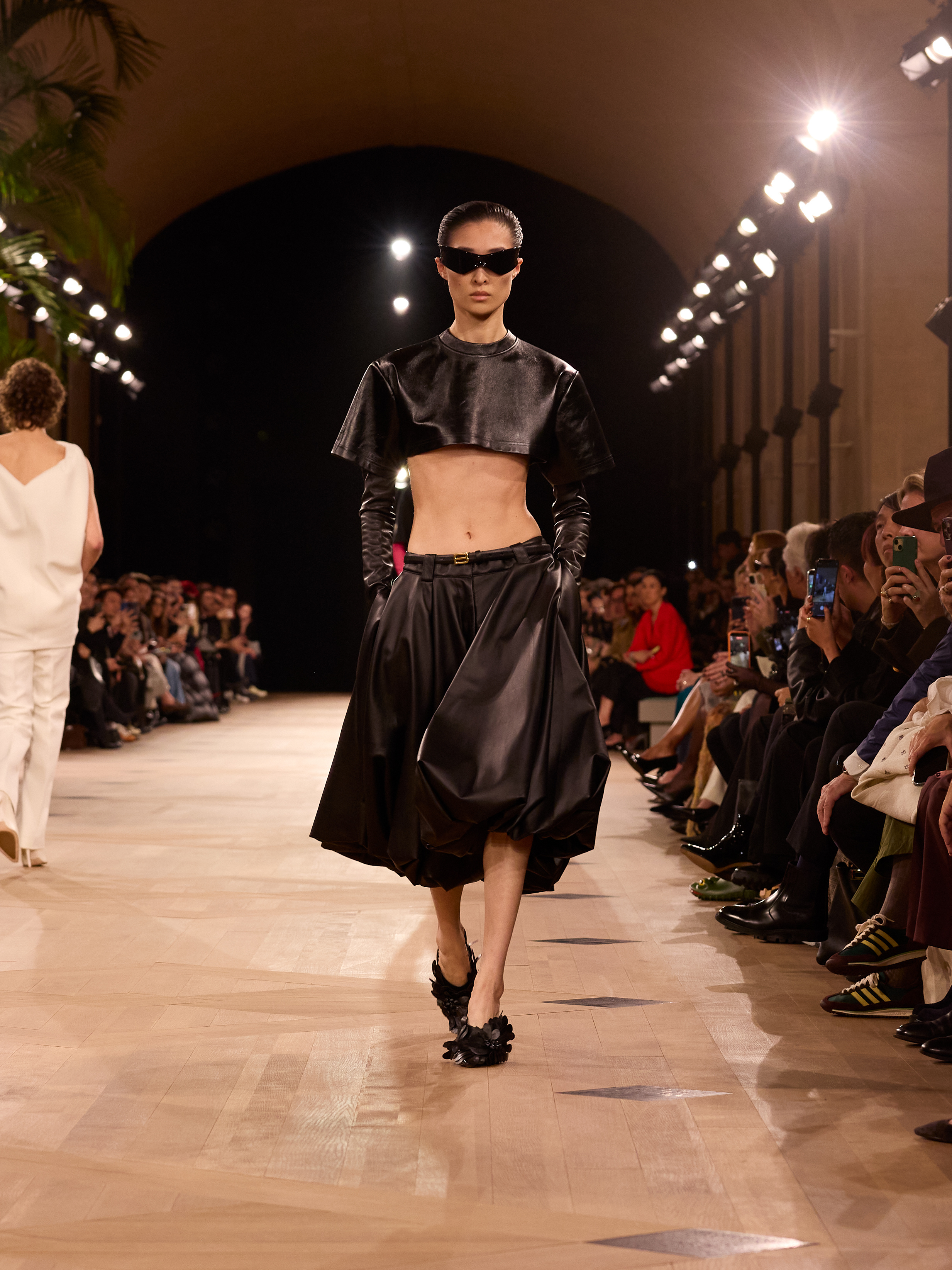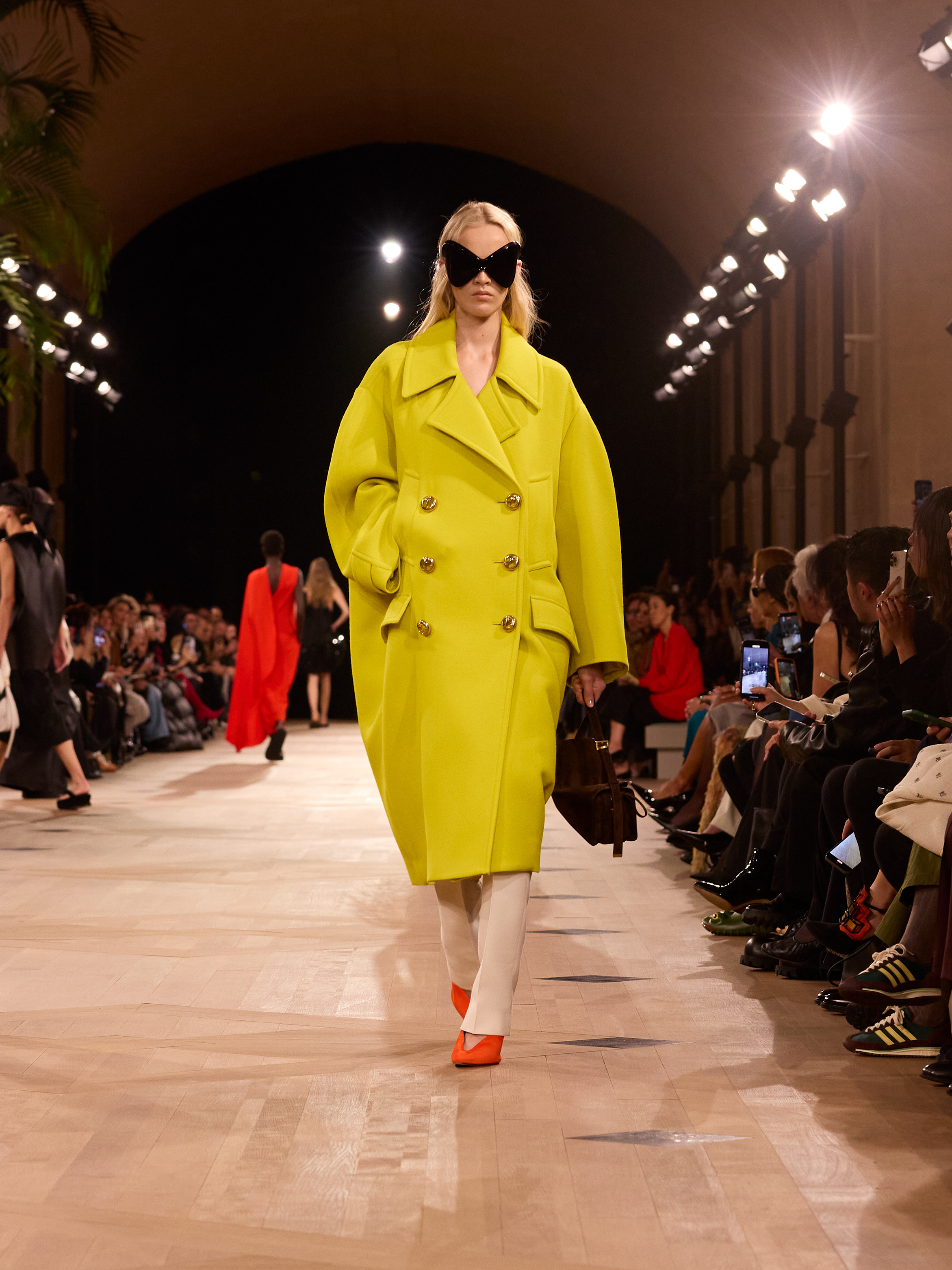系列中可见灵动垂坠的披风、品牌档案中汲取的羽毛流苏,以及经典机车包的回归,这一切都让高定工艺融于实穿设计。Pierpaolo Piccioli成功地让Balenciaga先生反重力的结构美学在当代重生,令人惊叹于品牌基因的永恒魅力。时装周