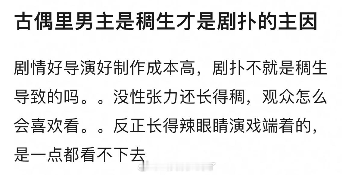 古偶里男主丑才是剧扑的主要原因,这个理由赞同吗?[柯基]
