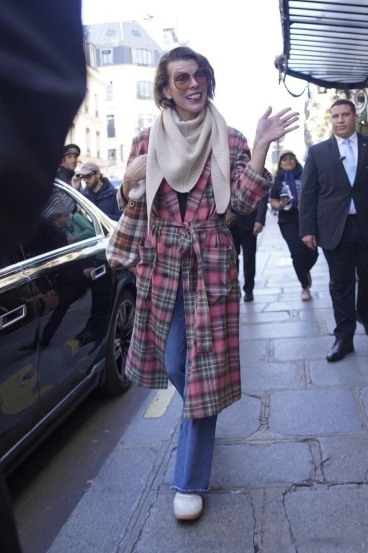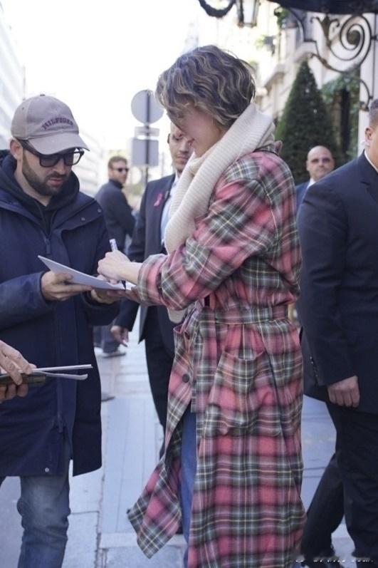 milla jovovich米拉乔沃维奇在巴黎外出离开酒店,米拉也是非常随和地跟粉丝打招呼并停下脚步为他们签名