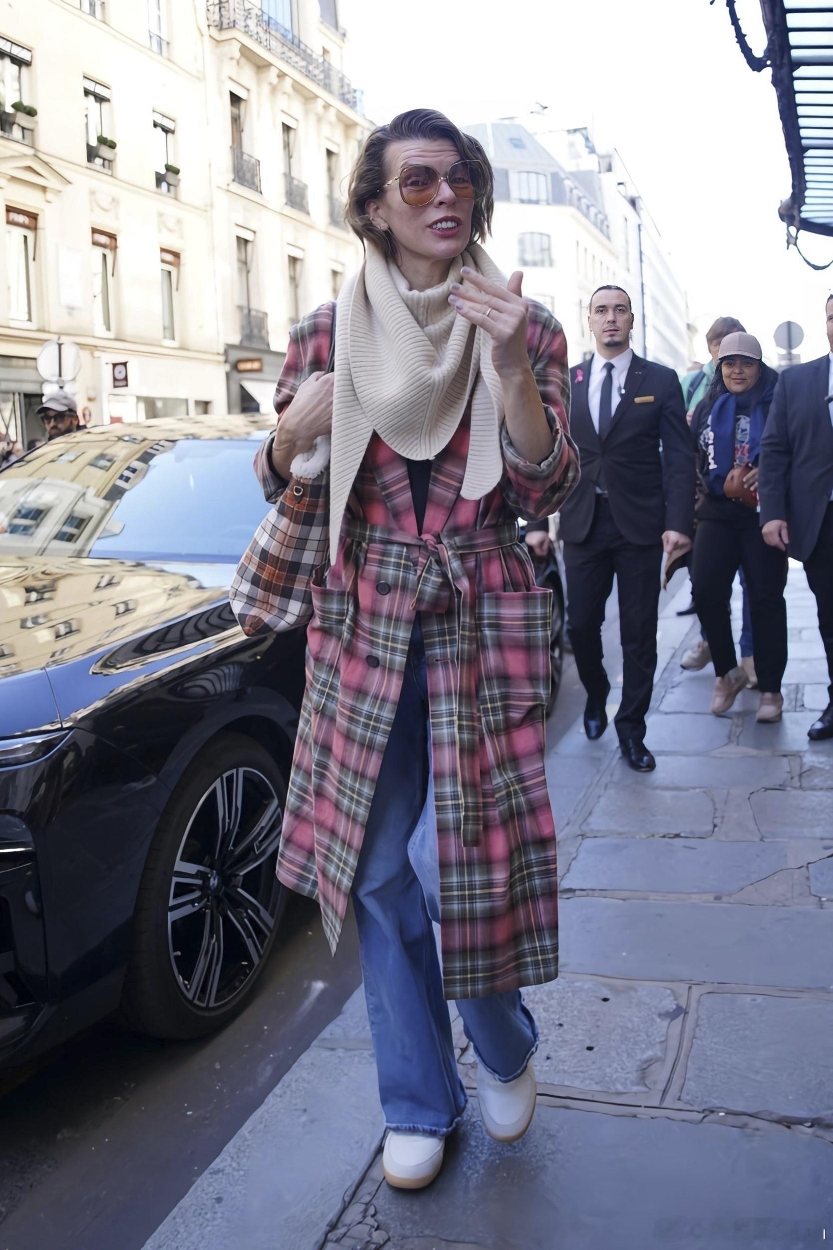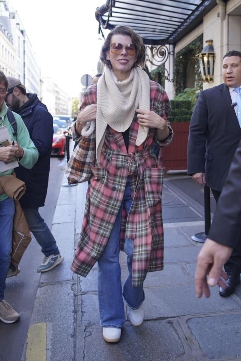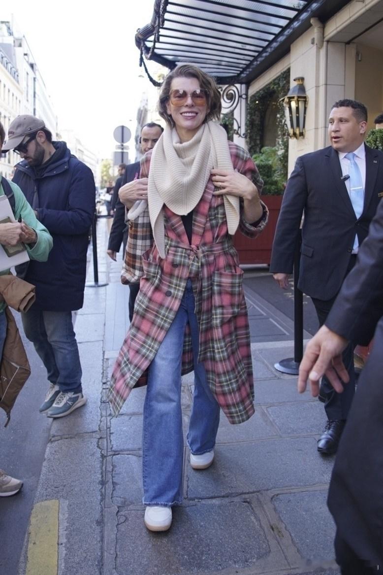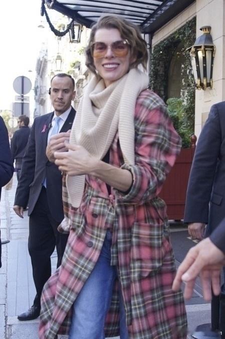 millajovovich米拉乔沃维奇在巴黎外出离开酒店,米拉也是非常随和地跟