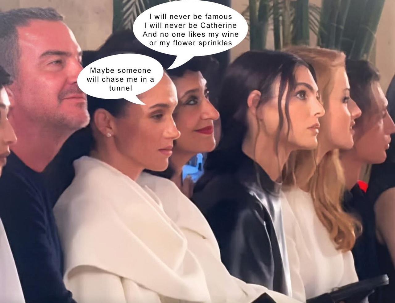 梅根·马克尔在巴黎世家的秀场上无聊透顶,因为她不是焦点。 去看看油管频道的解析视频吧——她根本不在主秀道上,而是在一条侧道,巴黎世家的官方视频里压根没拍这个区域。 她面临的现实是,她是秀场里一个普通的人,没有受到皇室成员的待遇,这是一个相当悲伤的现实,除了她之外,每个人都知道这一点。 无论梅根多么努力,永远无法跻身她渴望的阶层。有些东西就是永远无法逾越。她永远无法融入那些出身和成长环境都比她优越的上流圈。通过婚姻,她或许得到了头衔,获得了财富,但永远无法获得与生俱来的贵族血统——那是需要数代沉淀的底蕴,而非金钱所能购买。