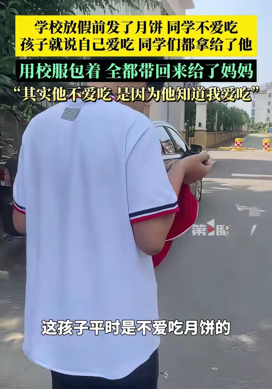 感动到了!重庆,男孩放假了,用校服兜了一大堆月饼回来!妈妈奇怪,问:“你不是不喜欢吃吗?”谁料,男孩一句话让妈妈破防。网友笑道:谁说“皮夹克”不贴心? 这事儿就发生在中秋前,重庆一所学校给每个孩子发了两块五仁月饼。教室里,不少同学皱着眉嘟囔“不爱吃”,14岁的男孩突然喊“我爱吃”,瞬间桌上堆起小山似的月饼。他没法子,直接把校服下摆一兜,任凭油渍浸满衣服,乐呵呵地提着往家跑 。 到家一开门,妈妈葛女士看着他鼓鼓的外套愣了神。等男孩把校服一摊,满桌月饼露出来,妈妈纳闷“你不是不爱吃吗”,男孩却笑着说“你喜欢呀,我给你带的”。就这一句,妈妈眼眶瞬间红了,原来自己随口提的爱吃五仁月饼,孩子一直记在心里 。 现在好多孩子习惯了被照顾,可这男孩却把妈妈的喜好放在心上,用最朴素的方式表达爱。比起昂贵的礼物,这份藏在校服里的心意,才是最甜的中秋礼 。 你们家孩子有没有做过什么小事,突然让你觉得特别暖心呀?来评论区说说~