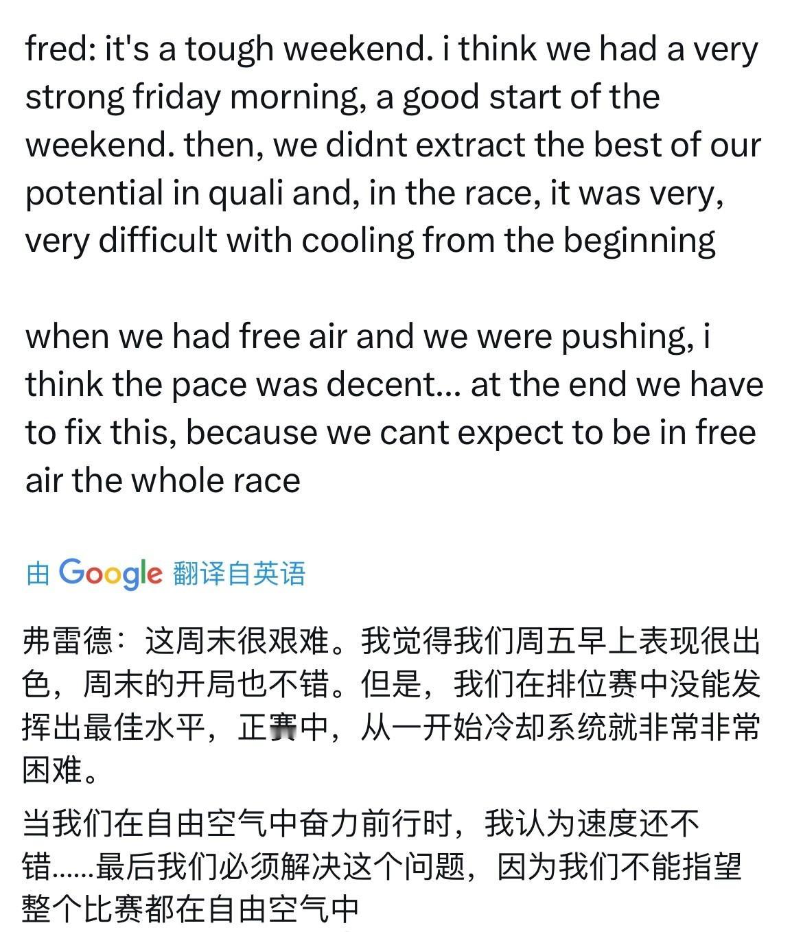 前段时间法拉利老板埃尔坎让教皇给方向盘施法,看来没起作用,倒不如瓦嗨施展嘴炮。 以前好歹还是拿排位成绩挽尊,现在已经到了要拿一练硬吹了我真笑了,他脑子是在夏休被驴踢了吗? 瓦塞尔第108次首谈新加坡周五FP1中法拉利(勒克莱尔P2)的优异表现。