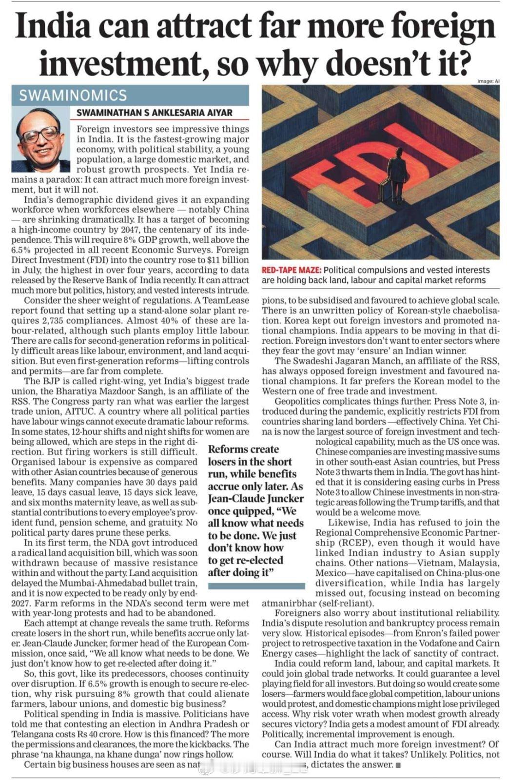 印媒讨论为什么印度为什么没能成功吸引外资,不过这篇文章仍然是避重就轻,没敢深说。