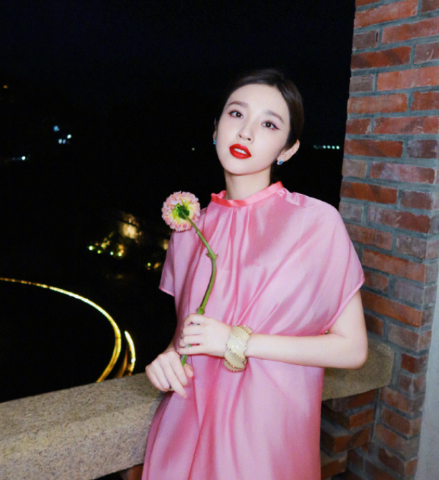 唐艺昕的中秋粉色妆造,超有感觉的!