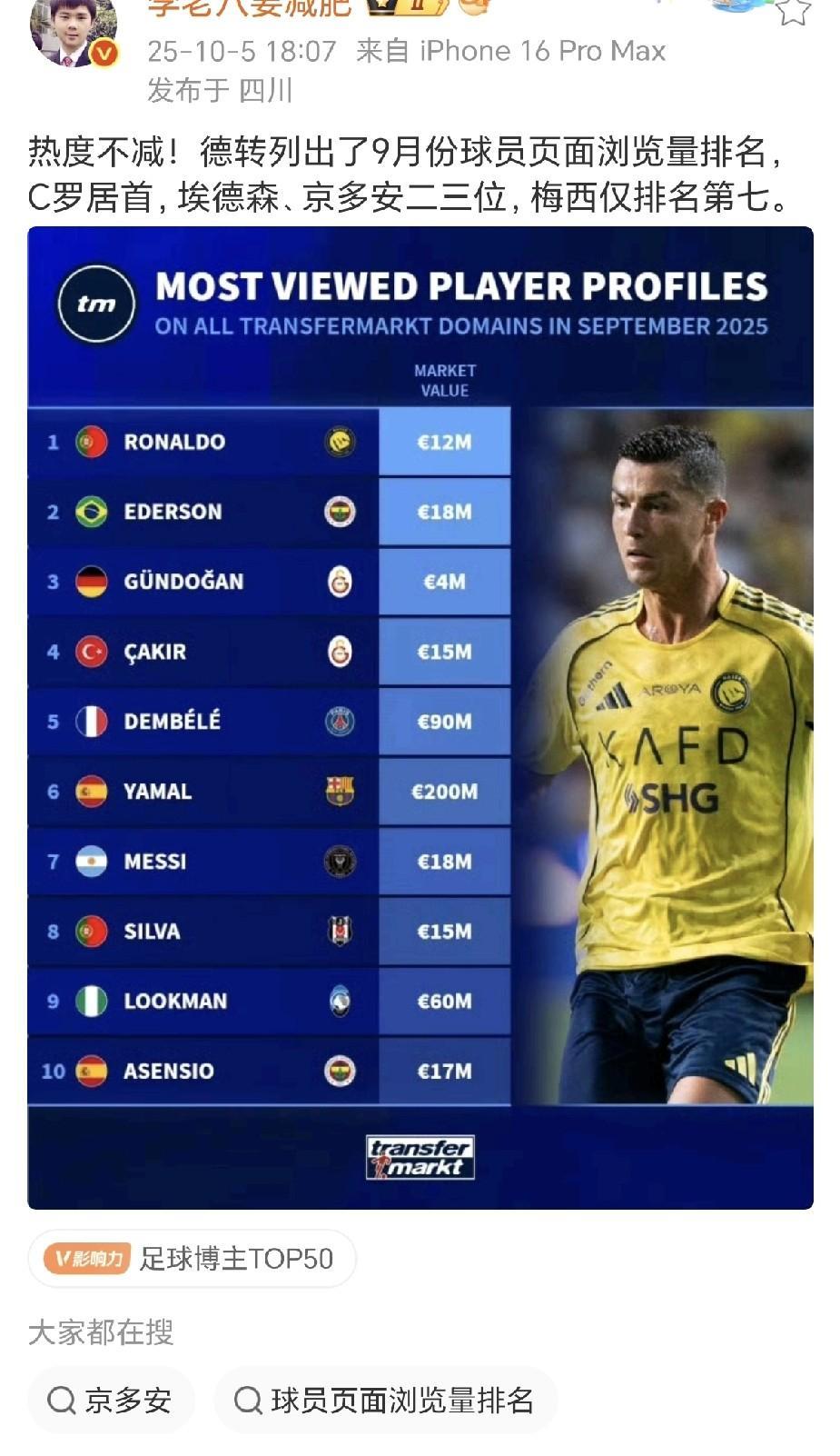 埃德森和京多安和流量队曼城有关,它们的转会引发球迷的讨论。 比较意外的是阿森西奥,以前皇马励志哥,这么久还受关注。