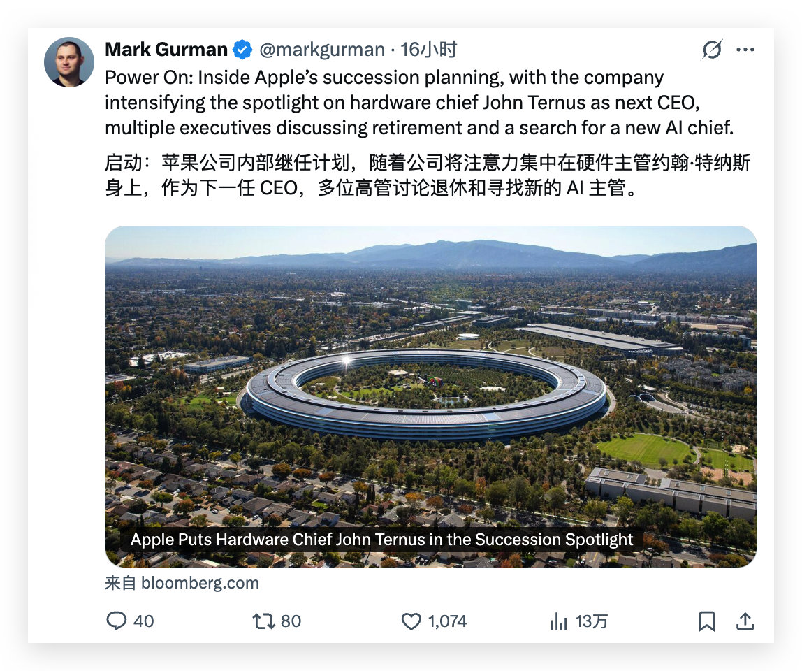 你们这样不断的强调接班人,到时 John Ternus 要是没当上 CEO 岂不是很没面子?[污]
