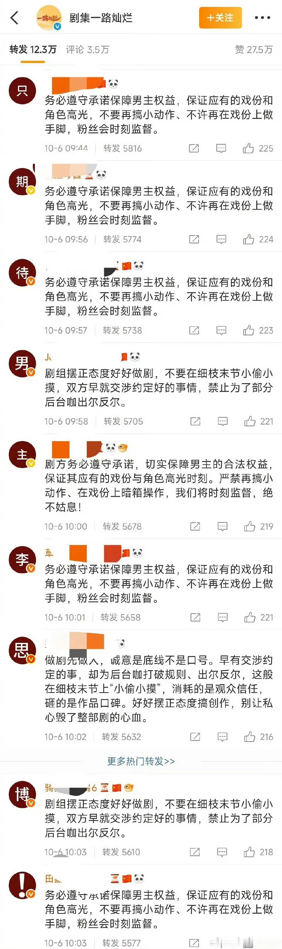 田嘉瑞粉丝给《一路灿烂》剧组排字