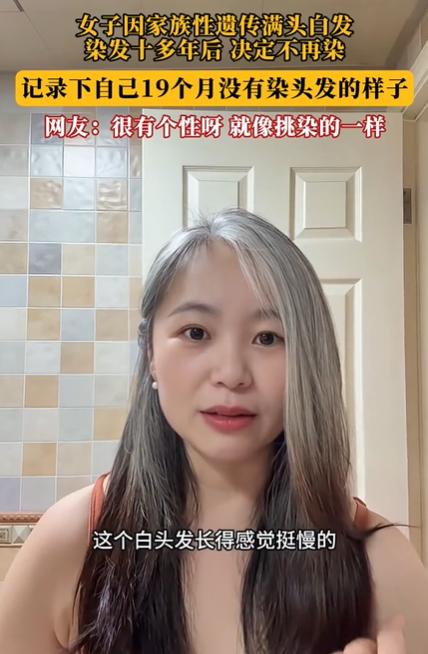 浙江一女子发现几根白发,她本以为拔了就是!万万没想到,仅仅几个月时间,她原本光亮顺滑的黑发,竟然全都变白发了!原来,她这是遗传性白发,家族里的人都有,她父亲甚至30岁头发就都白了,她有点自卑和焦虑,为此整整染了10多年头发,现在她决定不染了! 浙江的李女士(化名)怎么都没料到,自己的头发能在网络上引发这么多人的关注,起初,她只是发现头上冒了几根白发,心想拔了就没事,可仅仅几个月,她那一头光亮顺滑的黑发,居然几乎全白了! 后来她才知道,这是家族遗传性白发,家族里的人大多如此,她父亲甚至30岁头发就全白了,这让她又自卑又焦虑,为了遮住白发,她整整染了10多年头发。但现在,她决定不再染了,还记录下自己19个月没染头发的样子。 李女士的家族性白发来得很“猛烈”,一开始只是零星几根,可短短数月,黑发就大片“褪色”,这让她难以接受,因为白发,她在生活中没少感到窘迫,总觉得别人会盯着自己的头发看。 为了让自己看起来“正常”,她开始了长达十多年的染发生涯。,每过一阵子,她就得去美发店,用染发剂把白发盖掉,可每次染发后的刺鼻气味、头发的干枯毛躁,都让她烦恼不已,但为了摆脱自卑,她一直坚持着。 直到有一天,李女士突然想通了,她觉得与其一直靠染发遮掩,不如试着接受自己的“特别”,于是,她停下了染发的步伐,开始记录头发的变化。 19个月后,她的头发呈现出自然的灰白渐变,头顶的白色和下面的黑发形成了独特的层次,有网友看了说“很有个性呀就像挑染的一样”,这让她很意外。 她还发现,自己的白发生长速度比想象中慢,19个多月过去,白发大概长到了下巴位置,她在分享这段经历时,整个人的状态轻松了不少,能感觉到她渐渐和自己的白发和解了。 这件事在网上传开后,网友们的评论很有意思: 有人说:“这自然的渐变也太好看了吧,比刻意染的挑染还时髦!” 还有人感慨:“原来遗传性白发也可以这么有特色,接受自己真的很重要。” 从李女士的经历里,我们能明白不少事。每个人都是独一无二的,遗传带来的特征或许不是“缺点”,而是一种专属的印记,而且,过度染发对身体和头发都有伤害,适时停下,接受真实的自己,反而能收获不一样的美。 更重要的是,自卑和焦虑往往来自于对自己的不接纳,当我们愿意正视自己的特点时,反而会发现它其实没那么可怕,甚至还会成为别人眼中的亮点。 那么你们怎么看待这件事呢?欢迎在评论区说说你们的看法吧!