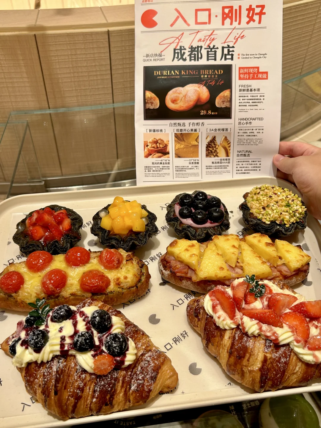 新开的一家面包店~简直不要太安逸!! 最近他们新店开业活动优惠特别大~ 各种款式的面包、蛋糕、法棍、巴斯克、真的是应有尽有~面包脑袋来这里真的走不动路~ 而且他们家的面包是真的特别好吃!! 招牌榴莲王、火焰榴莲、都很安逸的呢~ 成都面包店成都蛋糕店成都蛋糕成都蛋糕漂亮蛋糕