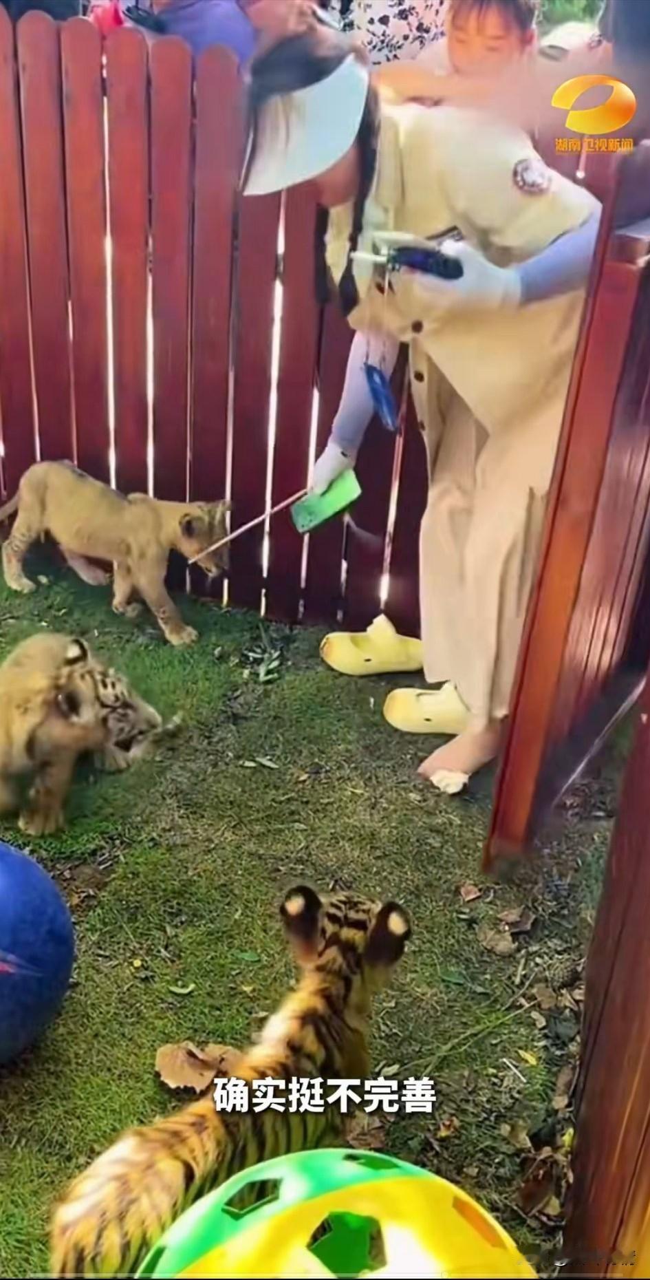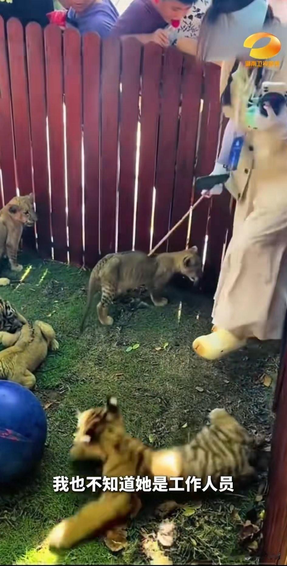 女子跳进野生动物园内殴打小动物, 引起了动物保护人士的不满, 大家纷纷指责女子太过残忍, 事发地是在山东威海西霞口神雕山野生动物园内,一女子身着红牌, 穿着洞洞鞋和手套, 手里面拿着铁棍, 进去老虎狮子幼崽园里面, 打开手机直播拍摄, 应该是直播卖劵的, 老虎狮子幼崽很是调皮上前咬了她, 于是她就起身拿着铁棍对幼崽进行了殴打,还用脚去踢了幼崽, 现场游客纷纷驻足围观, 有人将全程拍下来, 然后上传网络, 这就引起了轩然大波, 当地工作人员回应是工作人员, 以后会加强管理, 大家对于女子进入幼崽园区直播殴打幼崽怎么看? 动物园随拍分享 野生野生动物园 观野生动物园 动物园里的一幕