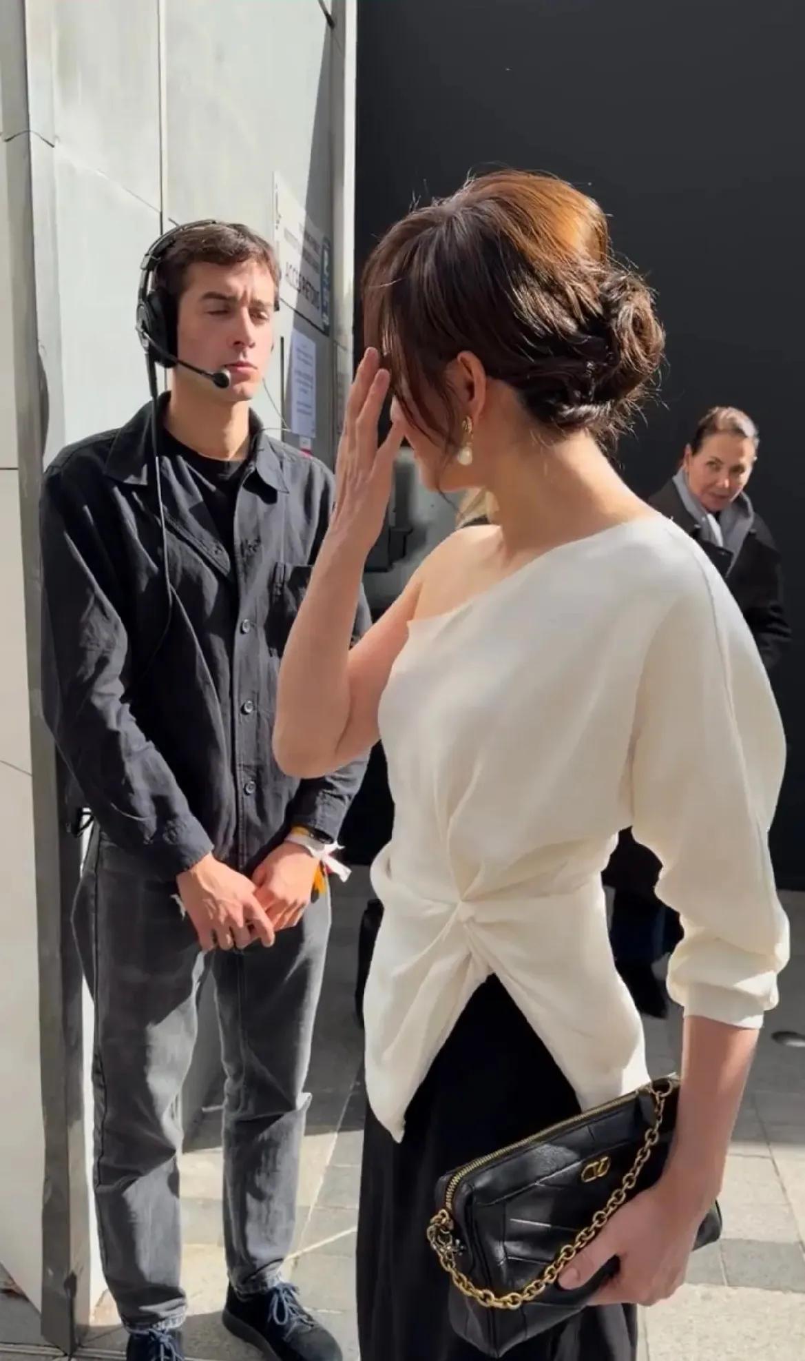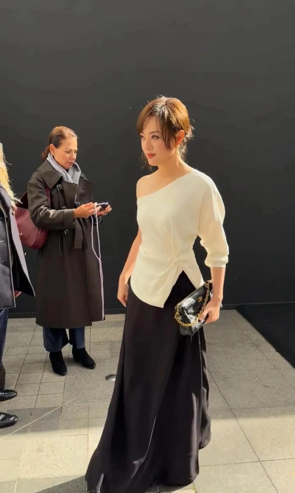 孙俪巴黎看秀生图火了 孙俪亮相Valentino 2026春夏秀,生图里她穿米白单肩上衣配黑裙,手提V字扣包,优雅又知性,全程微笑仪态超好。不过大家发现她标志性的唇下痣不见了,不知是遮瑕还是角度问题,但不少人觉得这样的娘娘更美了~ 孙俪