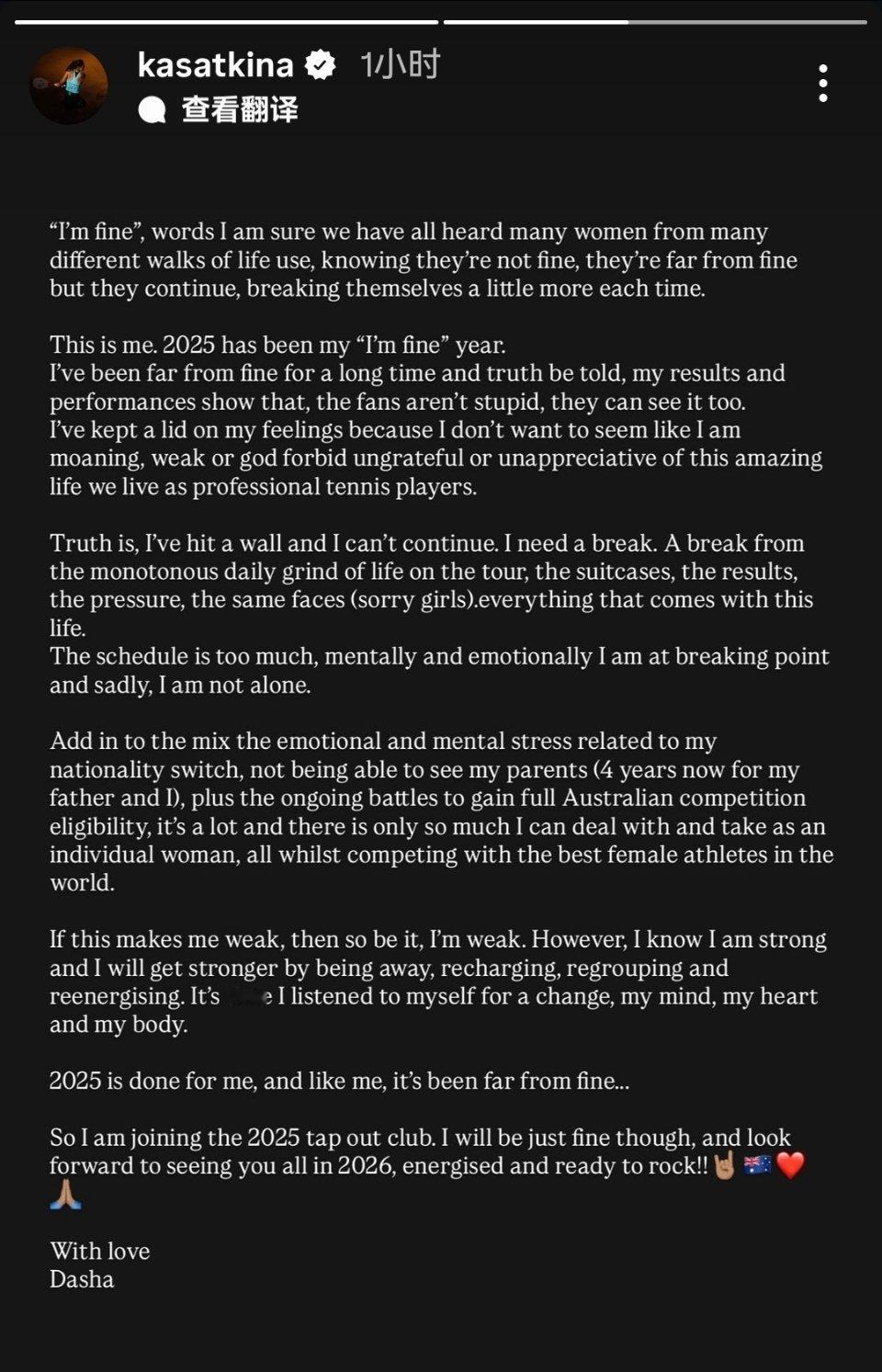 期待Dasha好好休整再出发,2026见!